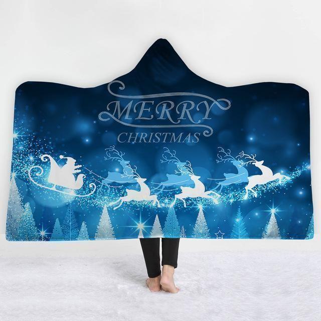 2020 X-Mas Santa Sleigh With Reindeer Hooded Blanket Christmas Decoration Ideas