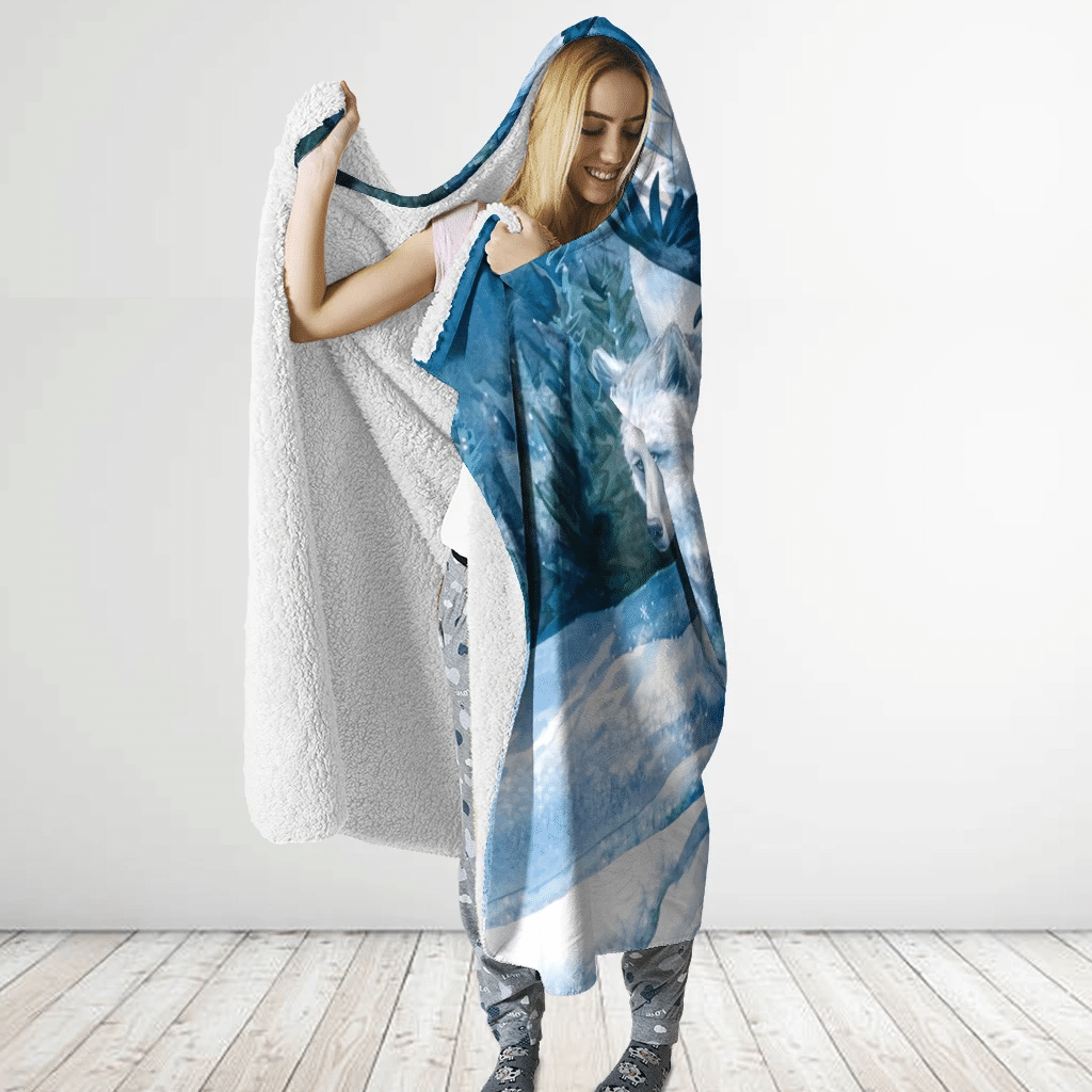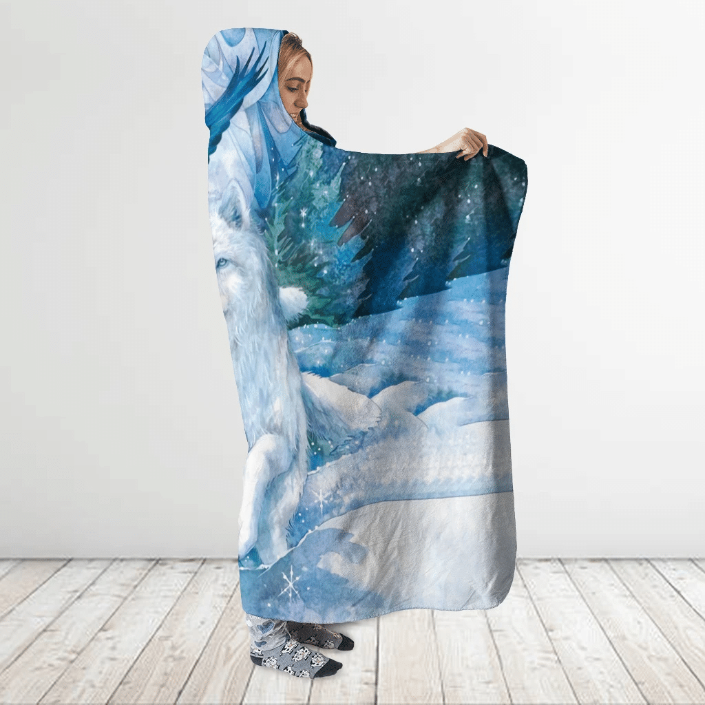 Tshirt2d 3D All Over Printed Picturesque Couple Of White Wolves In Snow Night – Hooded Blanket
