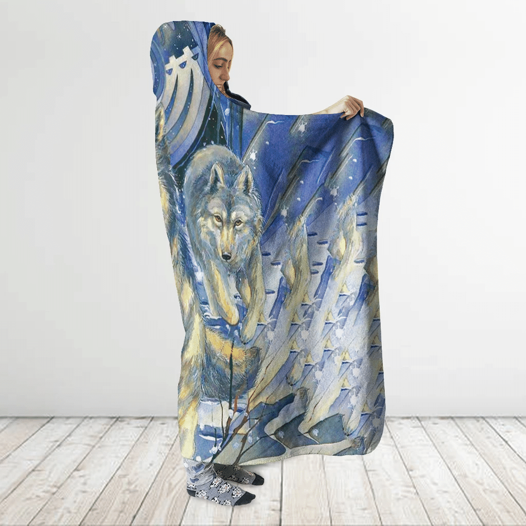 Tshirt2d 3D All Over Printed Picturesque Wolves Running In Snow Night – Hooded Blanket