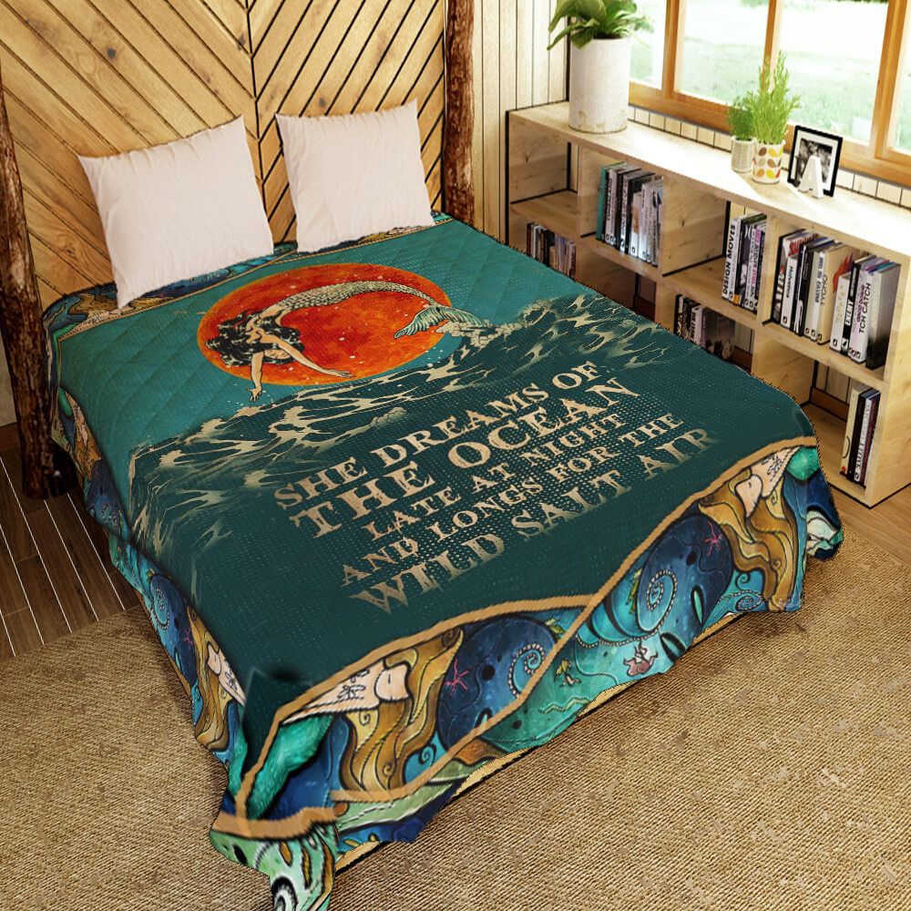 86THHMER-She Dreams About The Ocean Mermaid Quilt Blanket