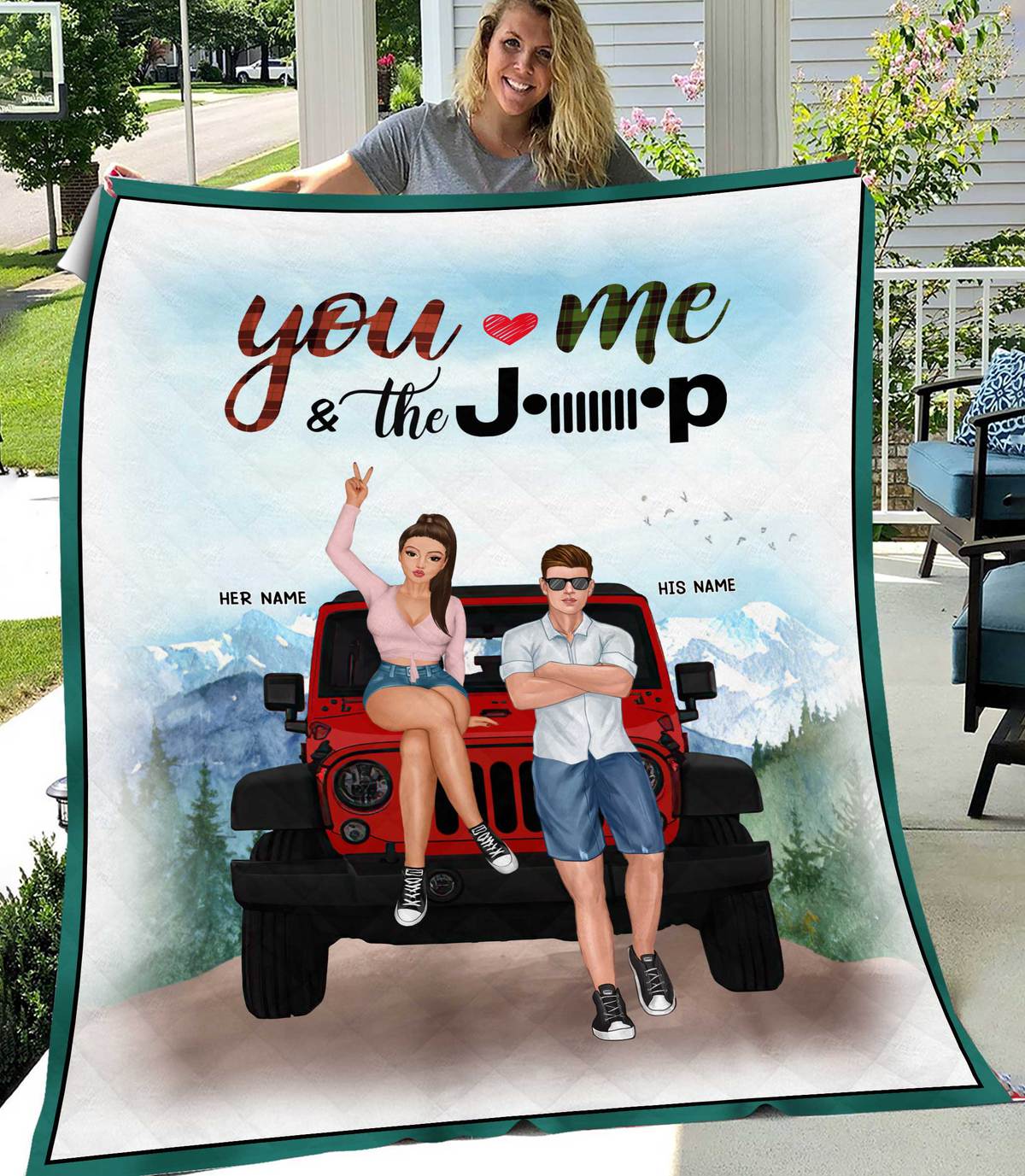 Tshirt2d 89Customized You Me And The Jeep Couple Customized Quilt Blanket