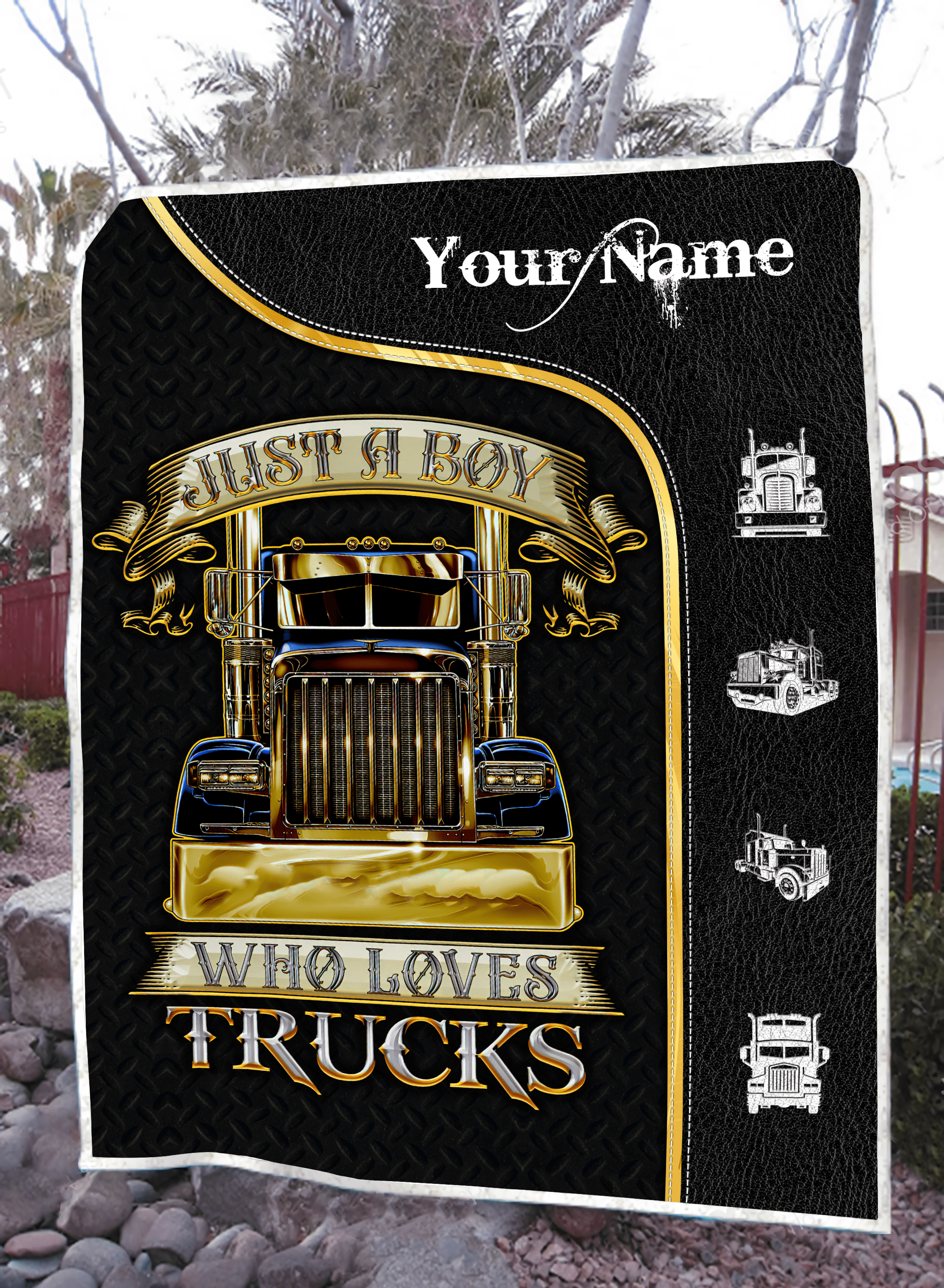 Tshirt2d Custom Name Trucker – Just A Boy Who Loves Trucks 3D All Over Printed Blanket Ph06012201