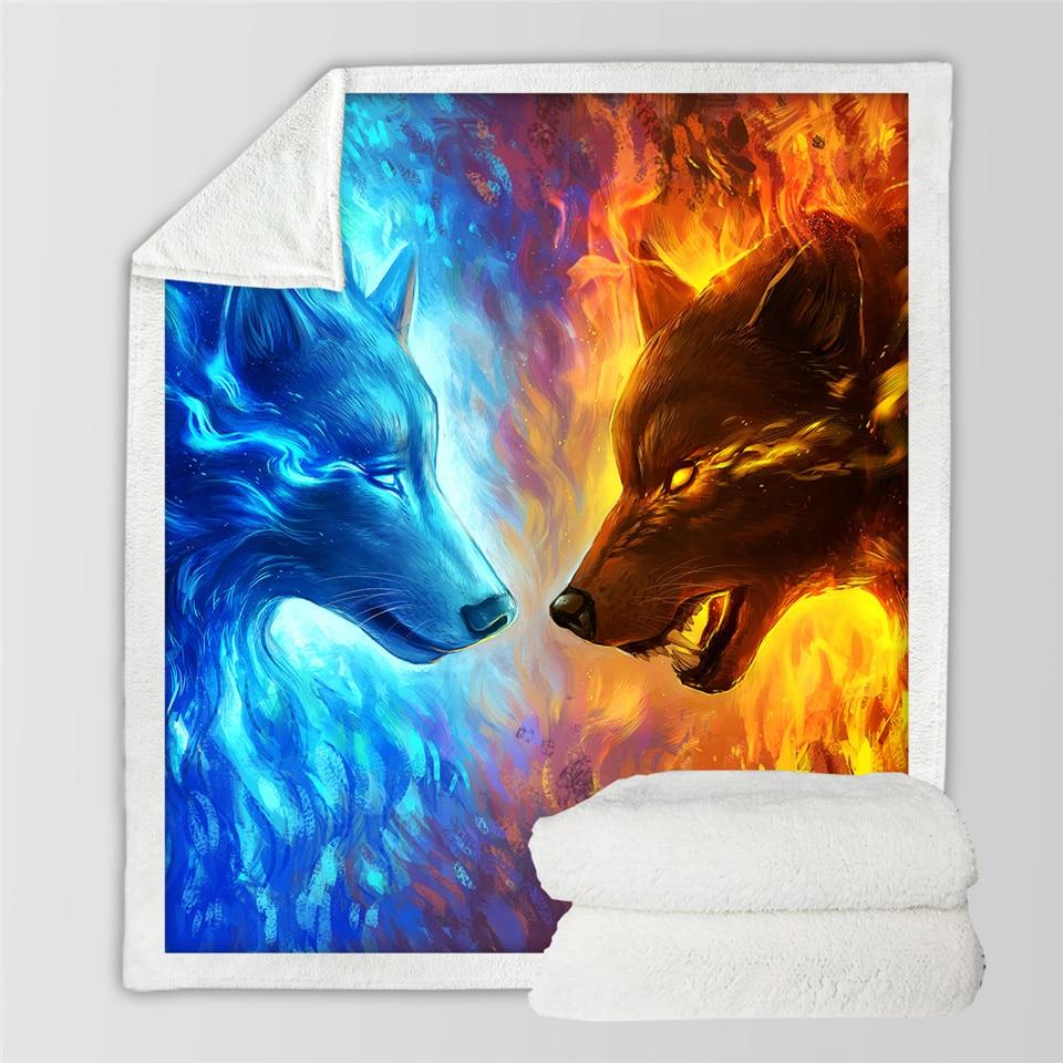 Tshirt2d Fire Ice Wolves Native American 3D Throw Blanket Lt10