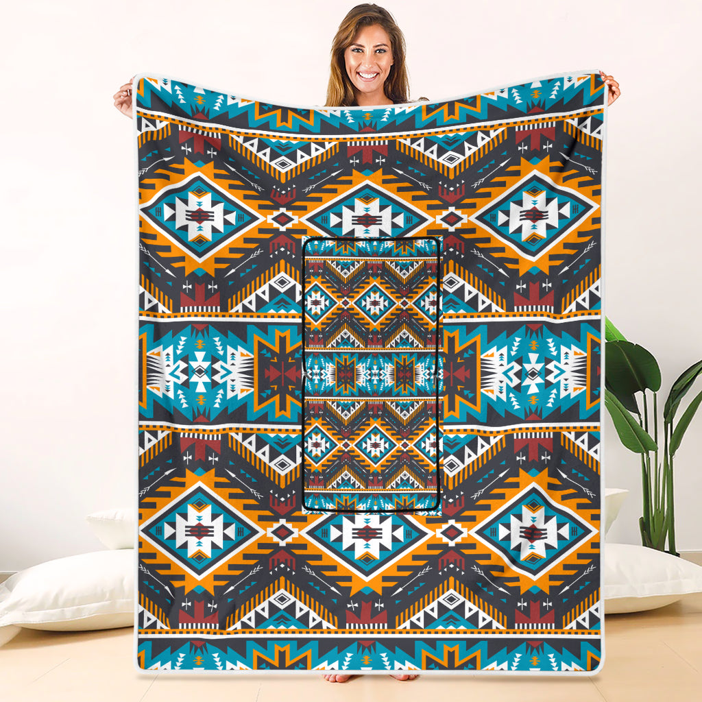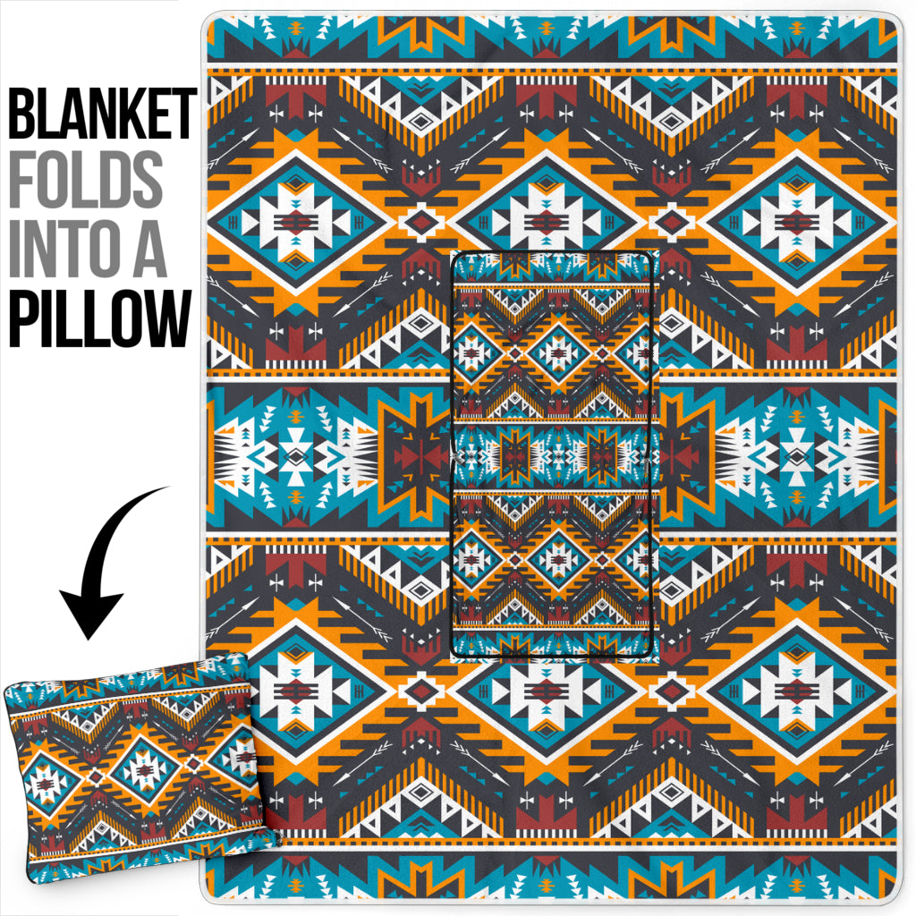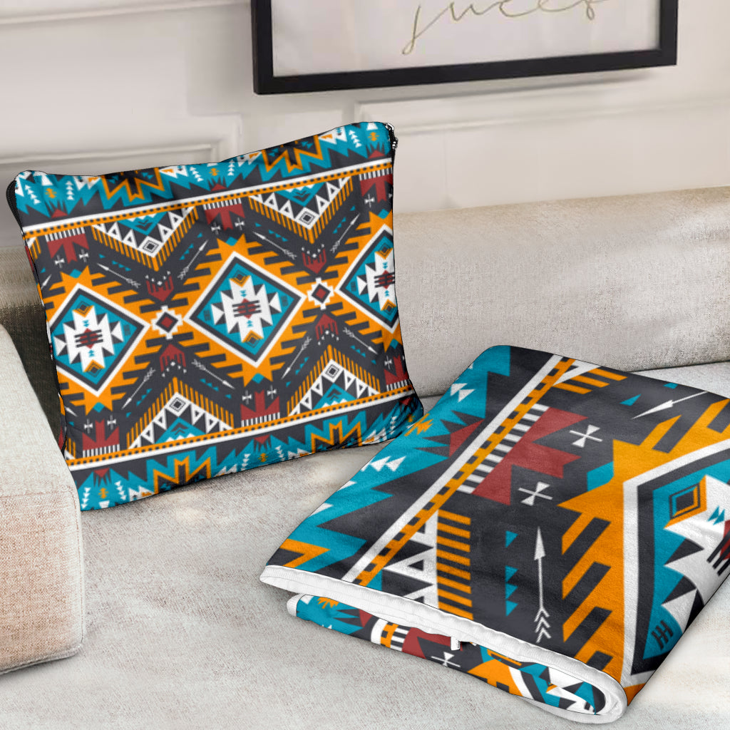 • Pillow Blanket - GB-NAT00406 Yellow Aztec Geometric Pillow Blanket