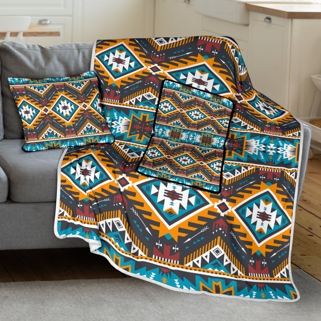 Gb-Nat00406 Yellow Aztec Geometric Pillow Blanket