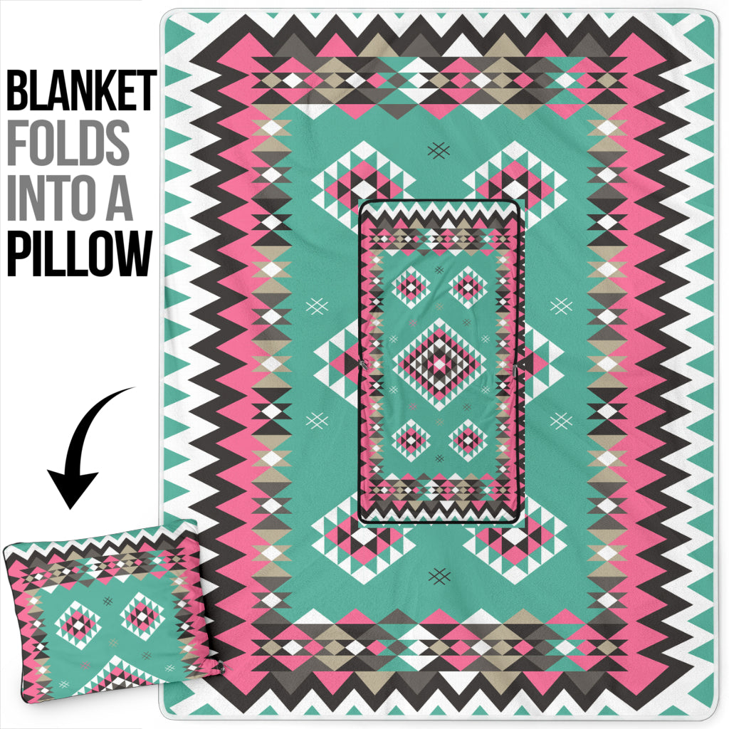 • Pillow Blanket - GB-NAT00415-03 Ethnic Geometric Pink Pillow Blanket