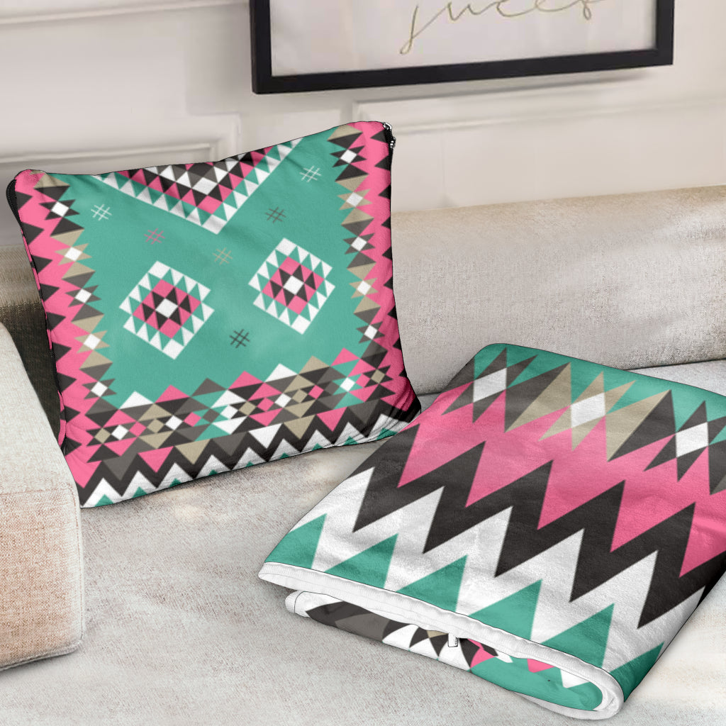 Gb-Nat00415-03 Ethnic Geometric Pink Pillow Blanket