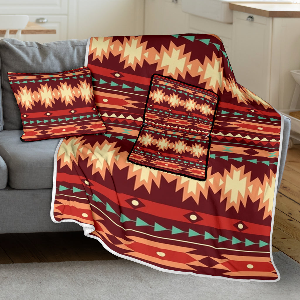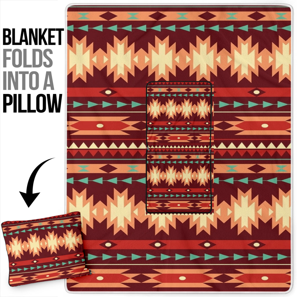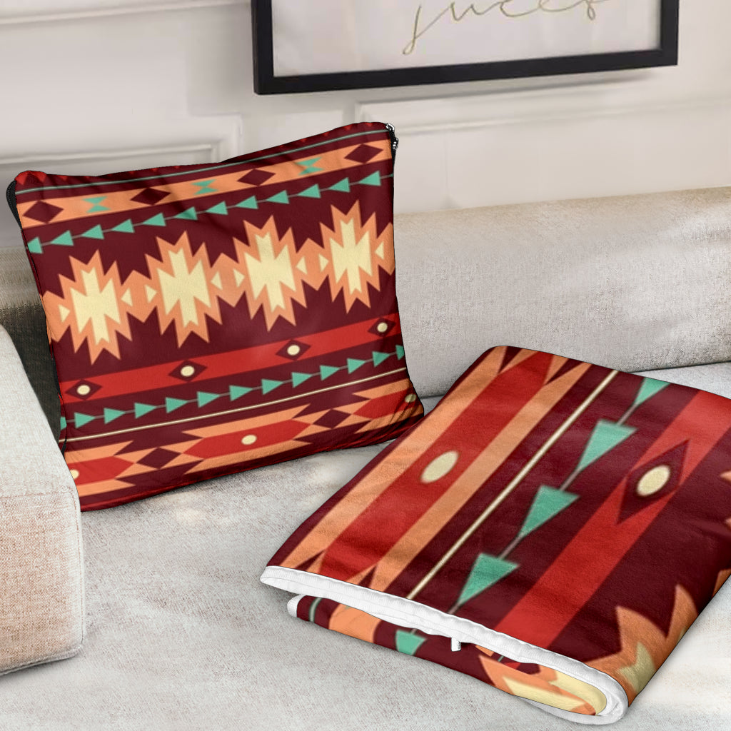 • Pillow Blanket - GB-NAT00510 Red Ethnic Pattern Pillow Blanket