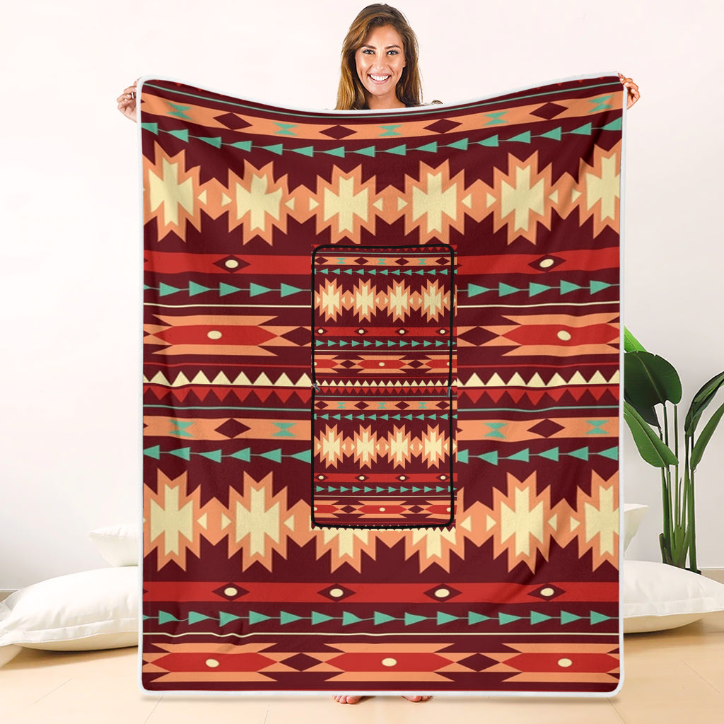 Style: Pillow Blanket - GB-NAT00510 Red Ethnic Pattern Pillow Blanket