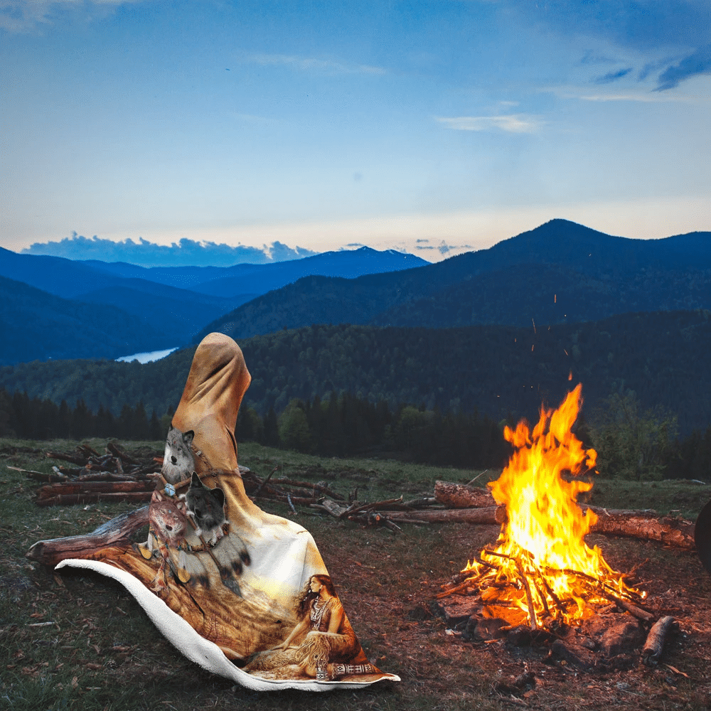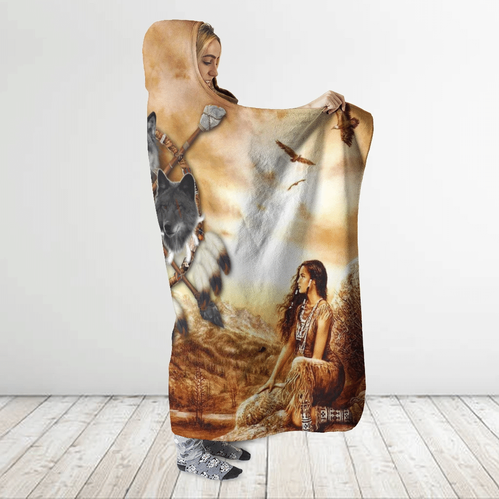 Tshirt2d Native American- All Over Printed Wolf Pack Hooded Blanket