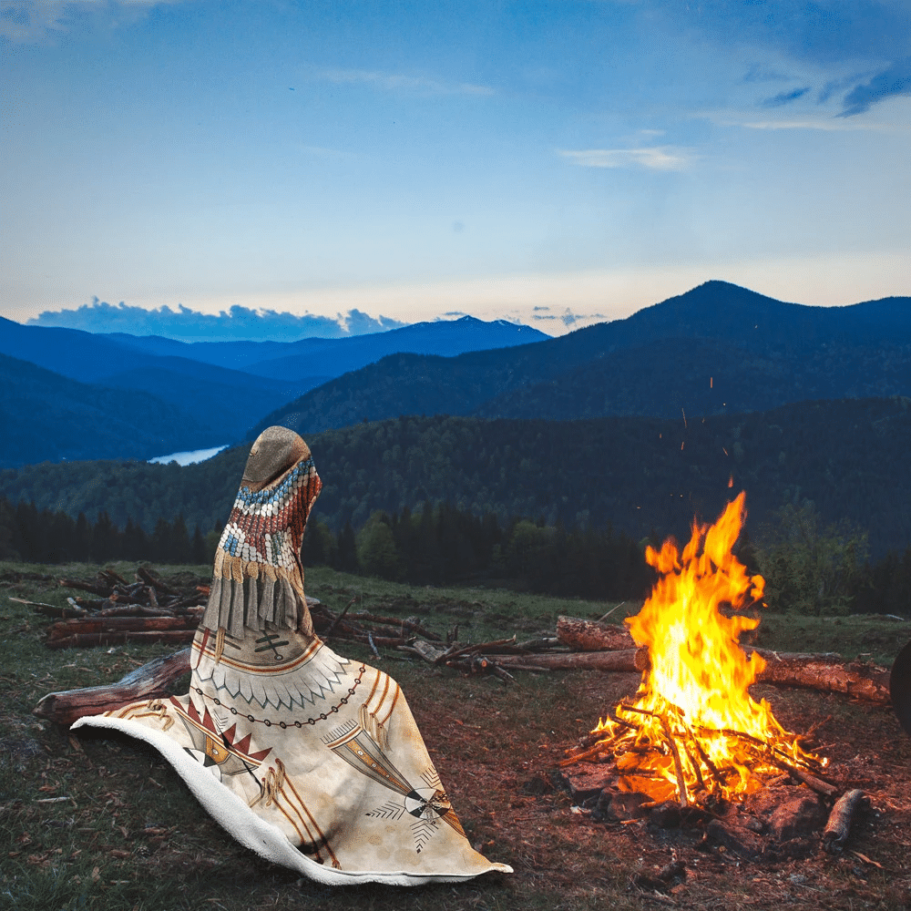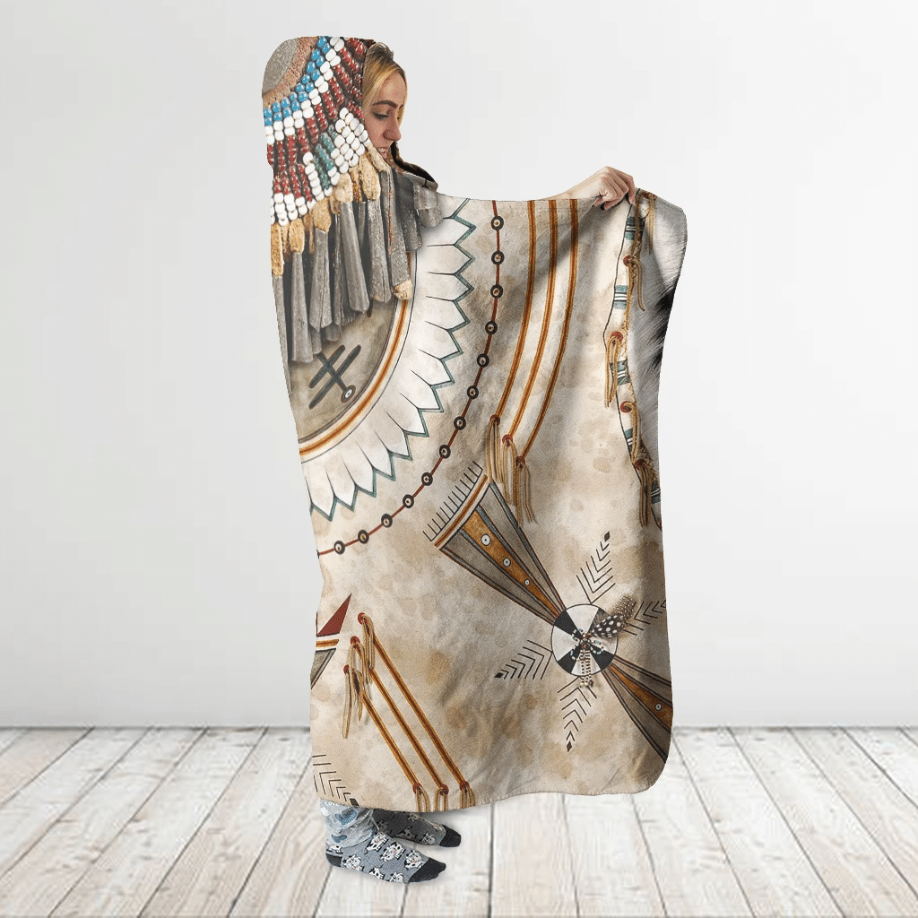 Tshirt2d Native American Style 3D All Over Printed Ancient Symbols – Light Blonde Hooded Blanket