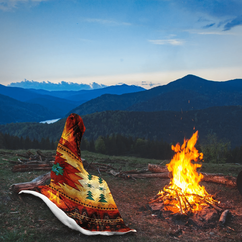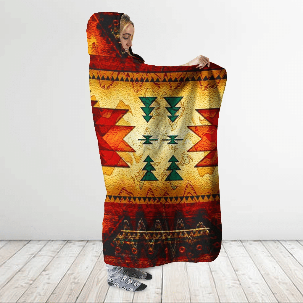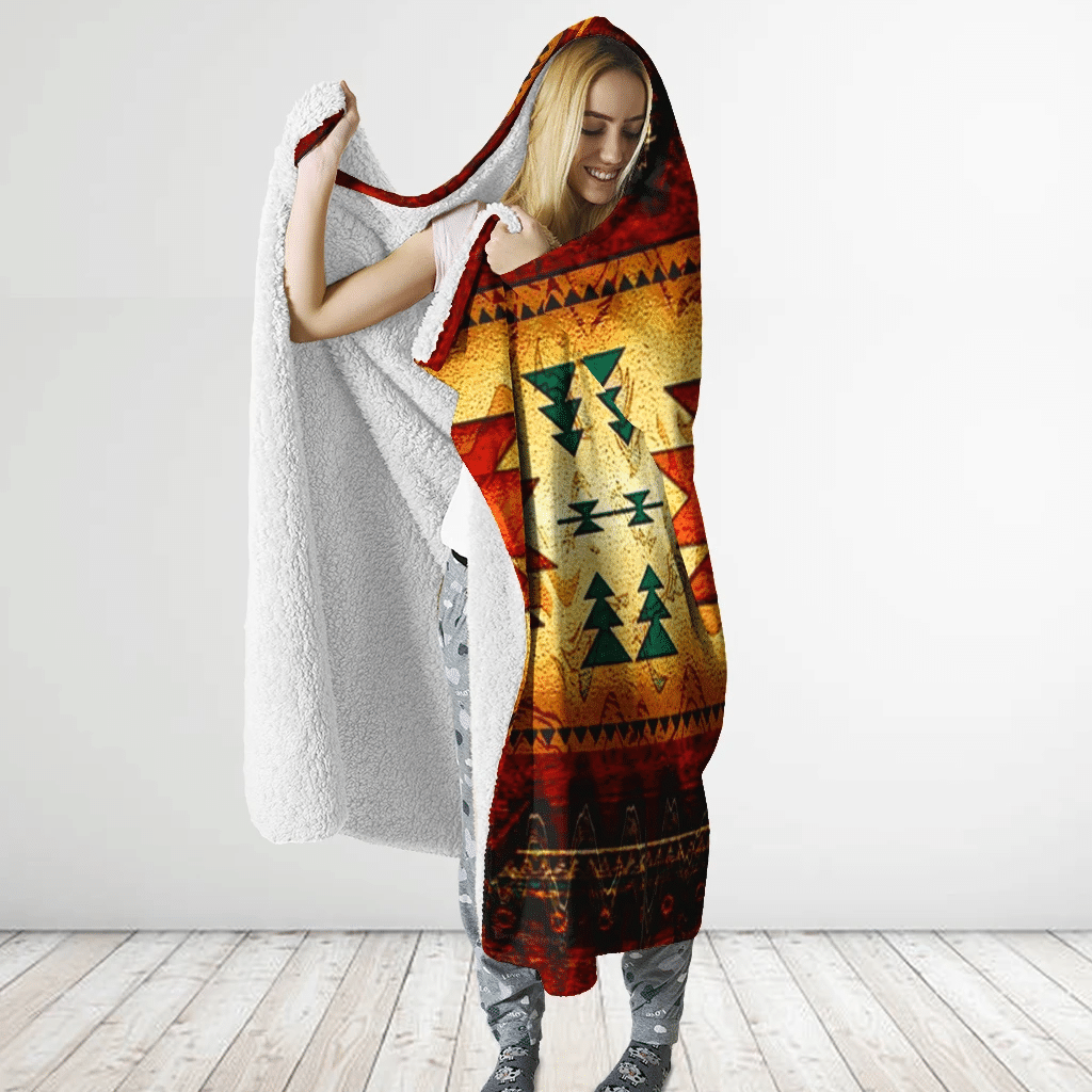 Tshirt2d Native American Style 3D All Over Printed Red Symbols Hooded Blanket