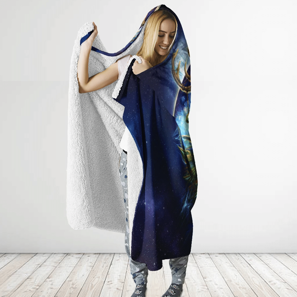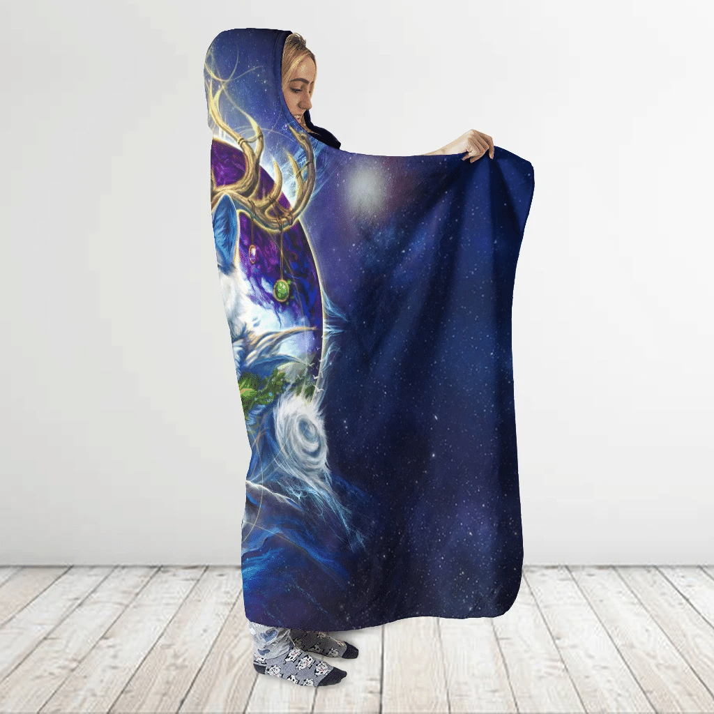 Tshirt2d Native American Wolf 3D All Over Printed Galaxy Blue Wolf King Hooded Blanket