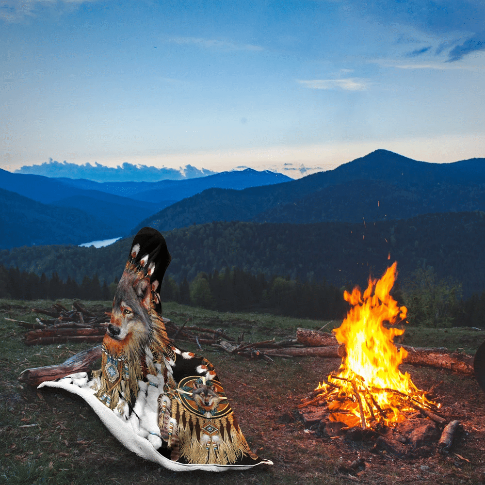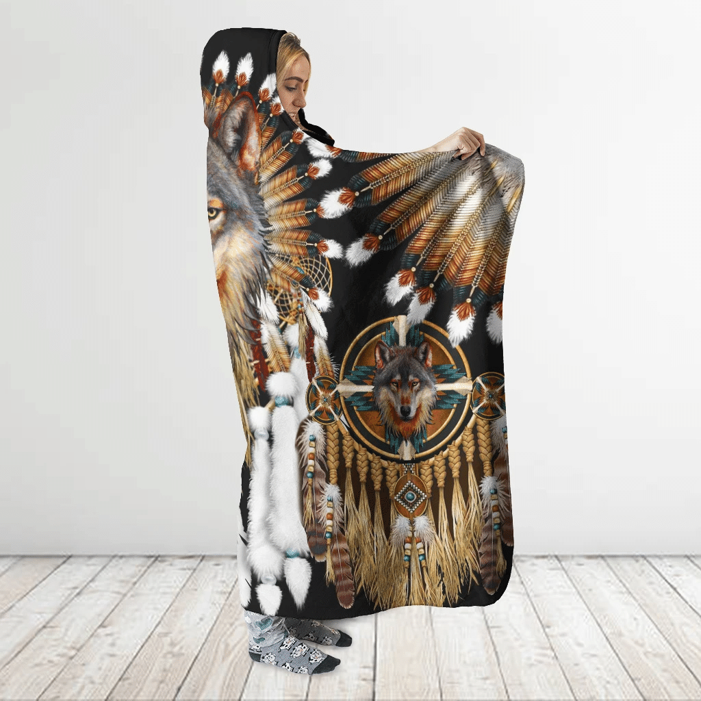 Tshirt2d Native American Wolf 3D All Over Printed Red Gray Wolf King – Hooded Blanket