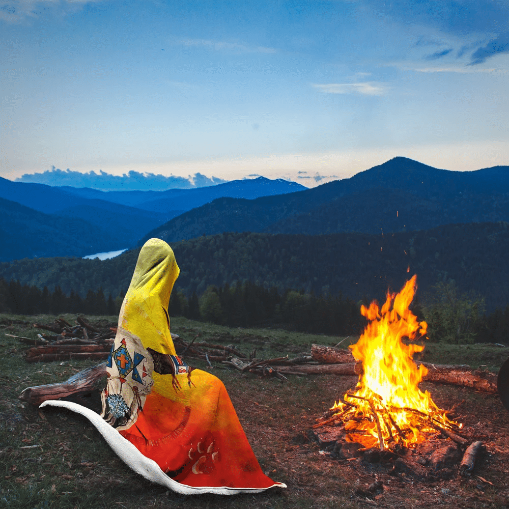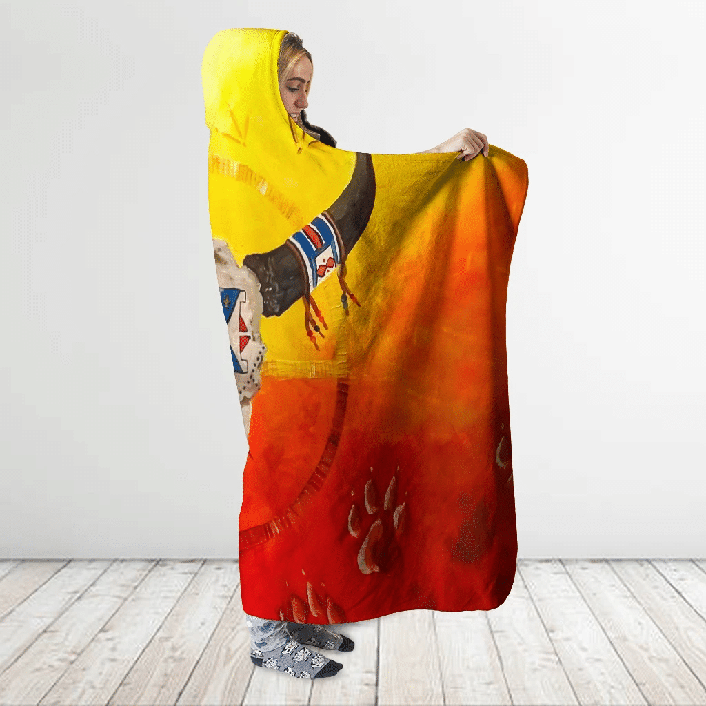 Tshirt2d Native Buffalo 3D All Over Printed Buffalo Skull With Wolf Footprint – Colorful Hooded Blanket
