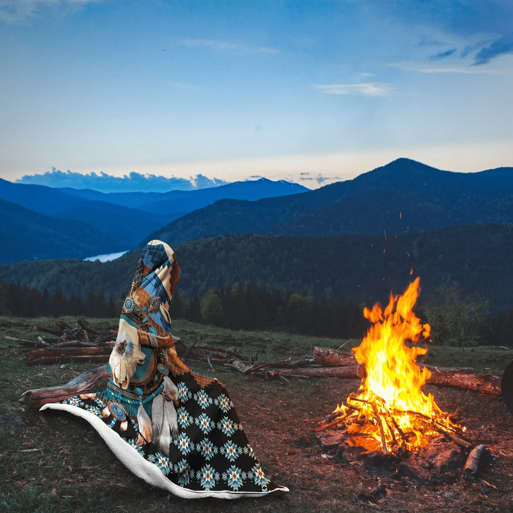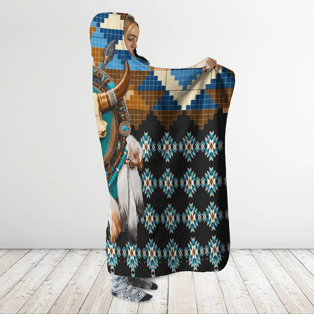 Tshirt2d Native Buffalo 3D All Over Printed Golden Horned Buffalo Skull With Wolf – Hooded Blanket