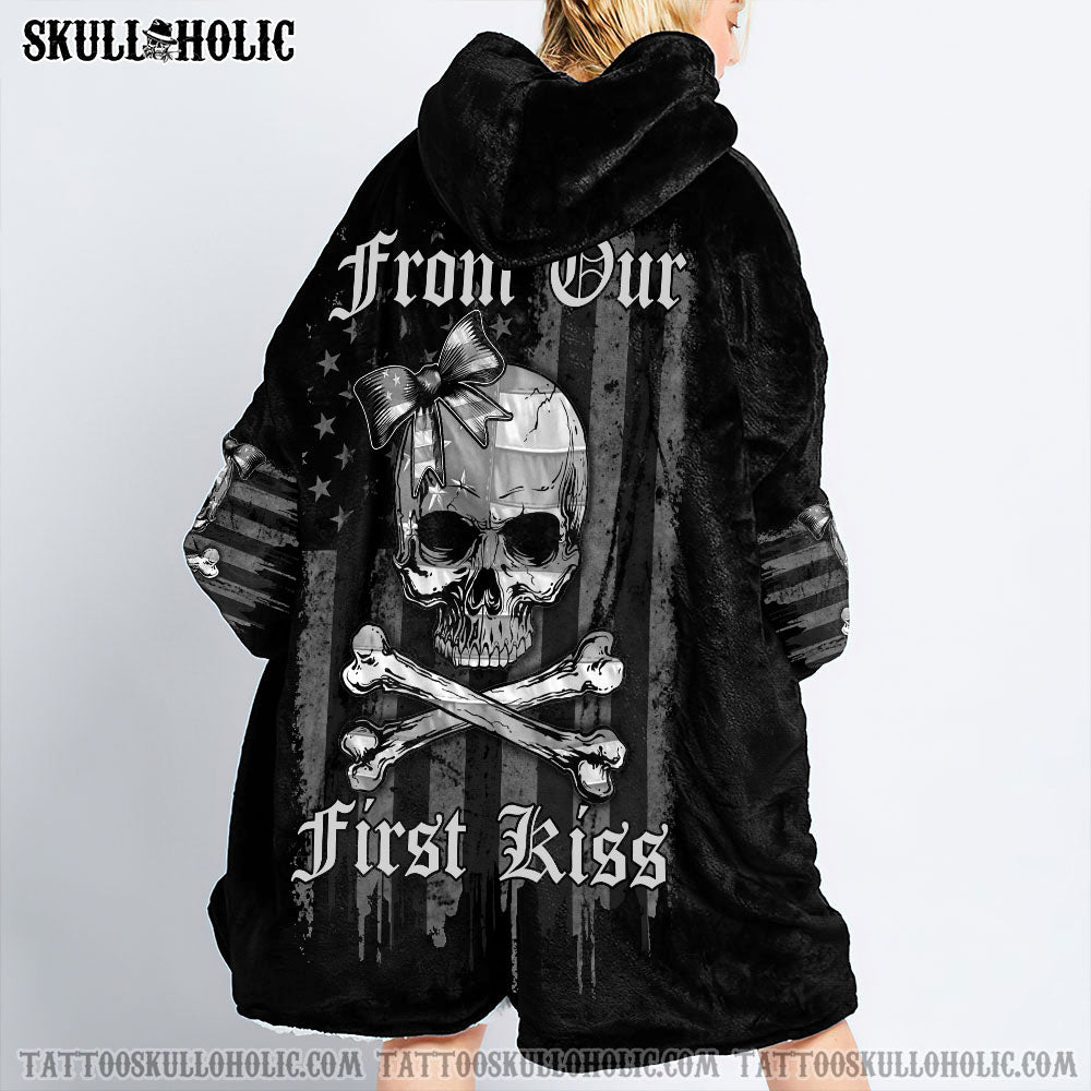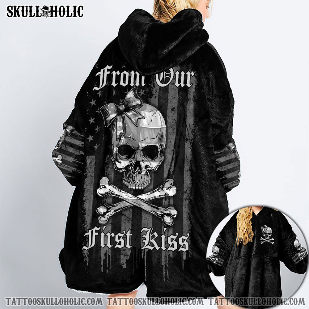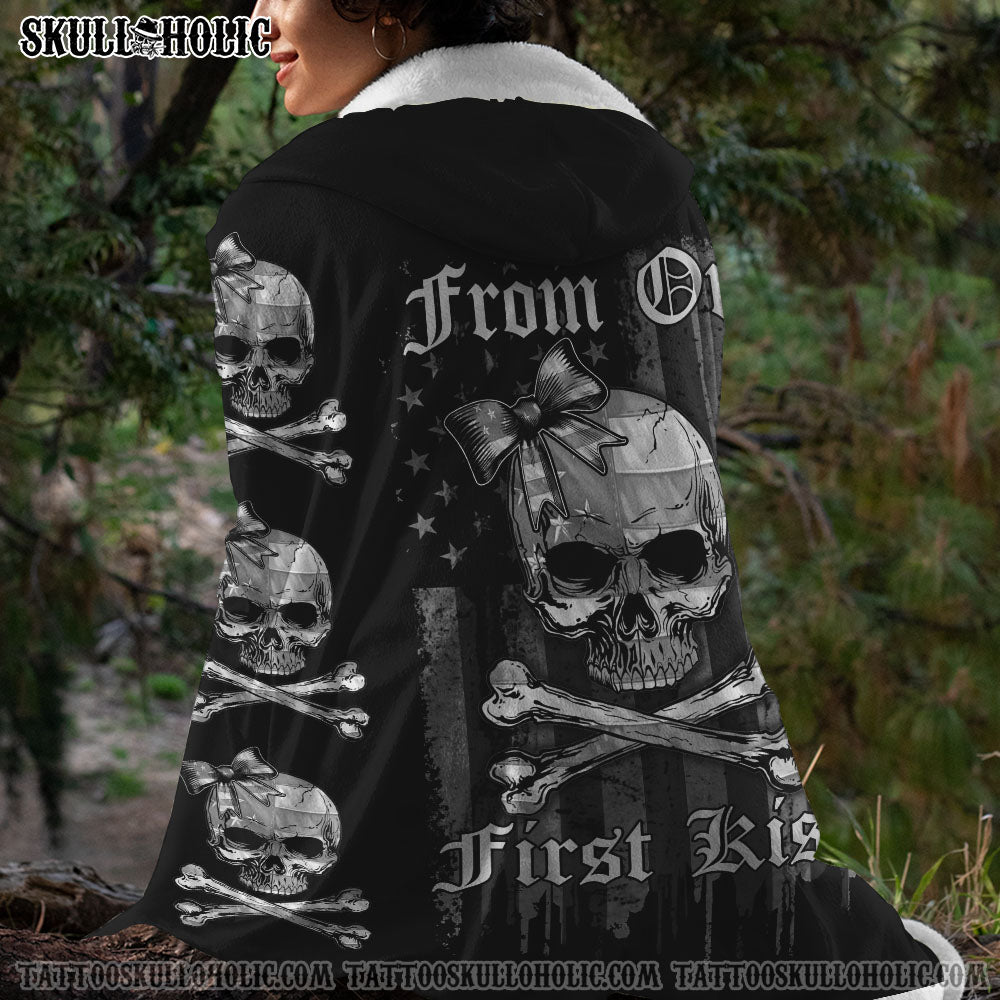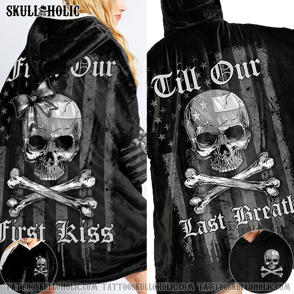 Tshirt2d Skull Bones First Kiss Last Breath Couple Sherpa Blanket Hoodie – Tlnz3011212