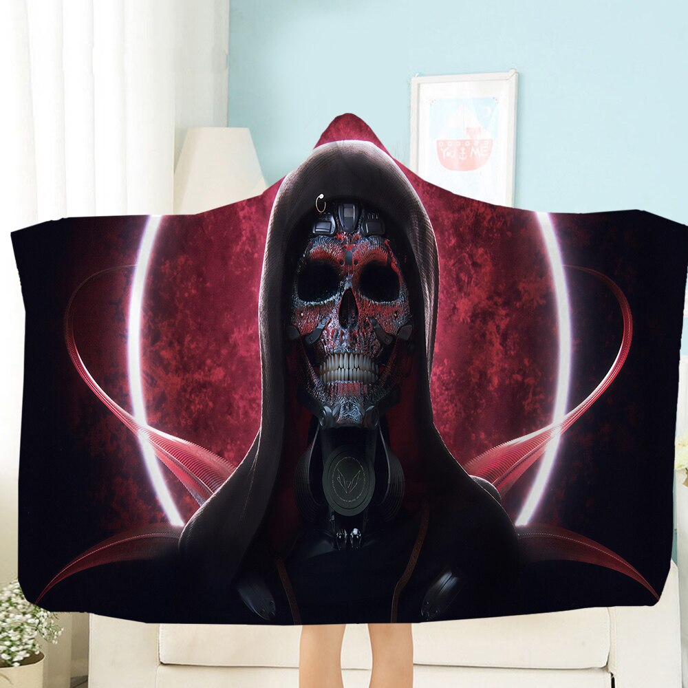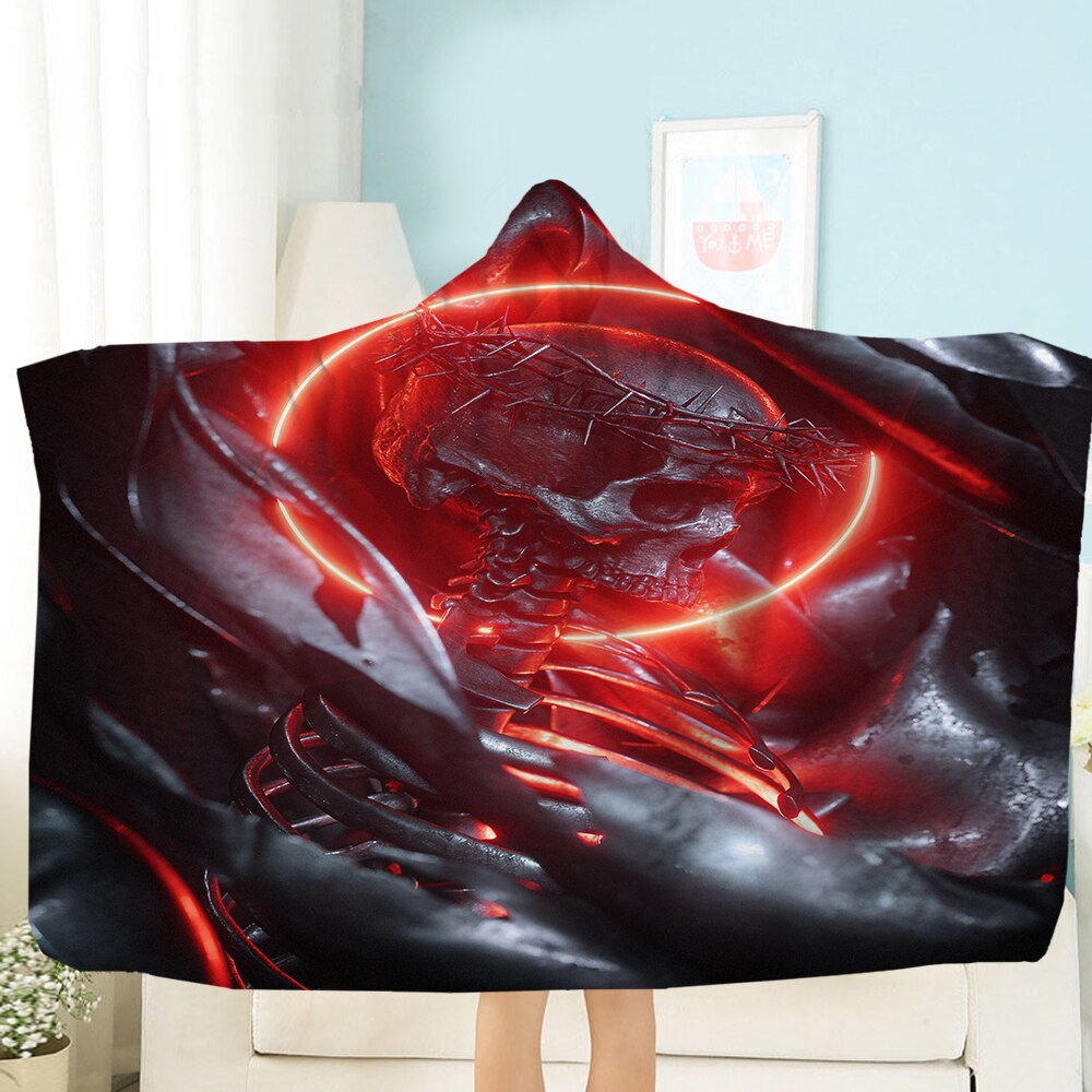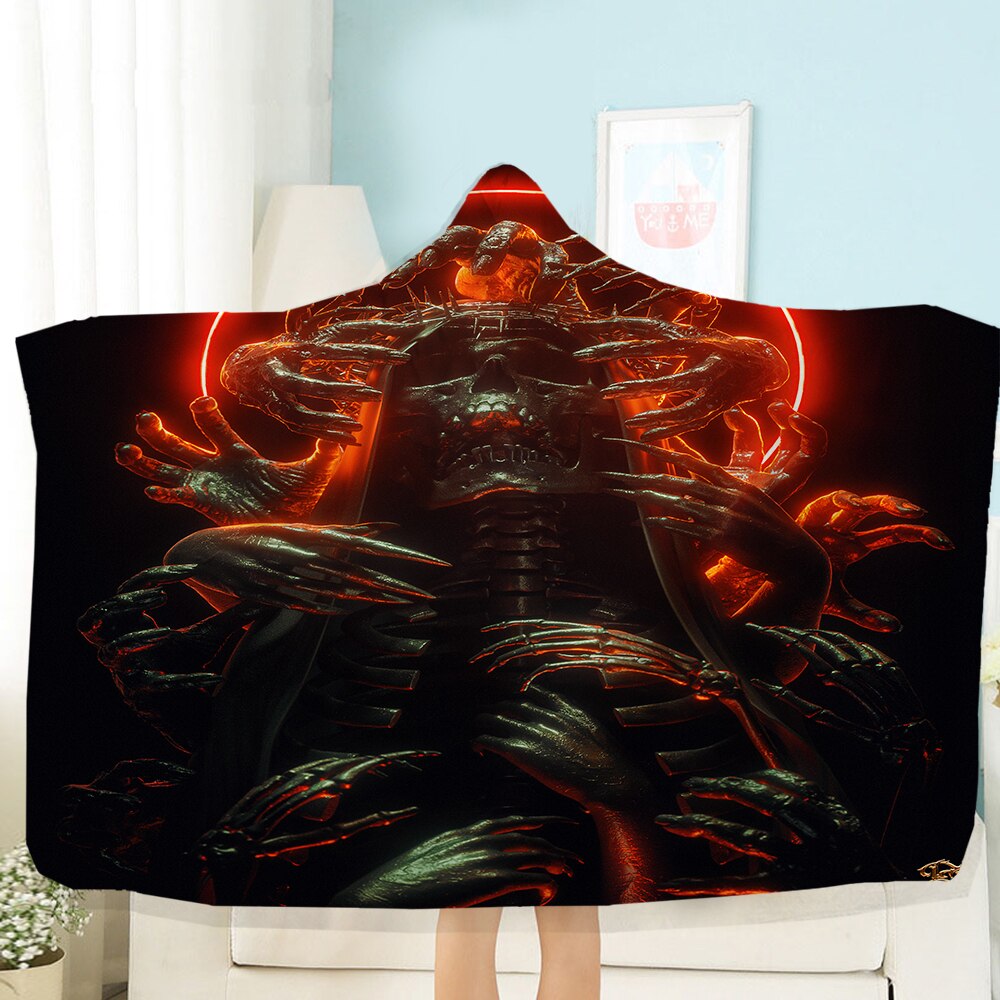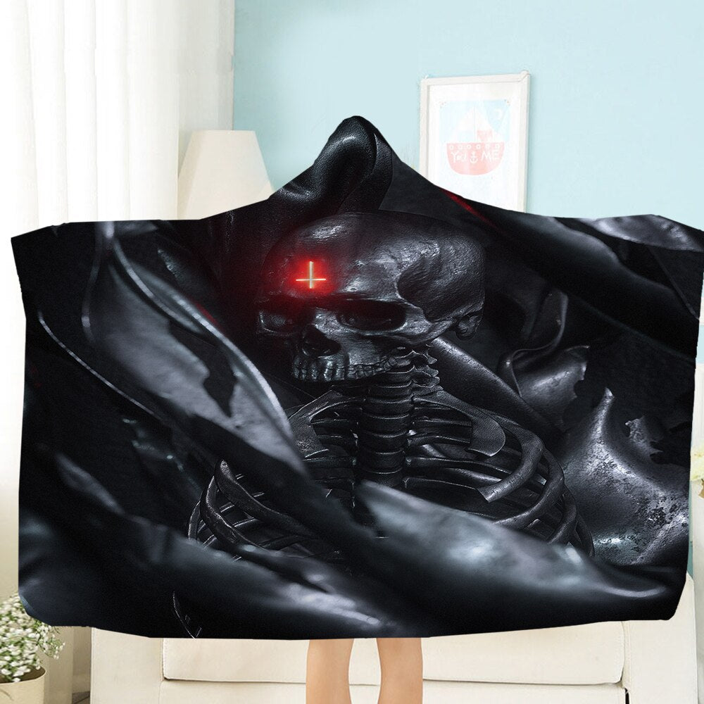 Terror Skull Blanket 3D Printing Hooded Blanket Fleece Blanket Black