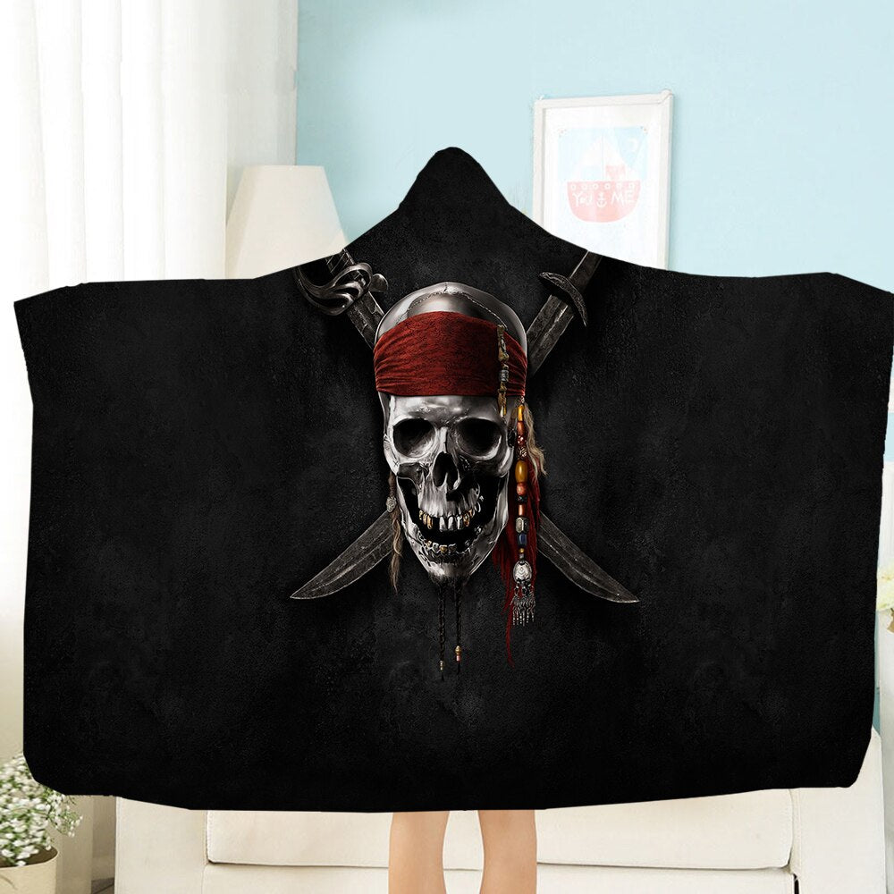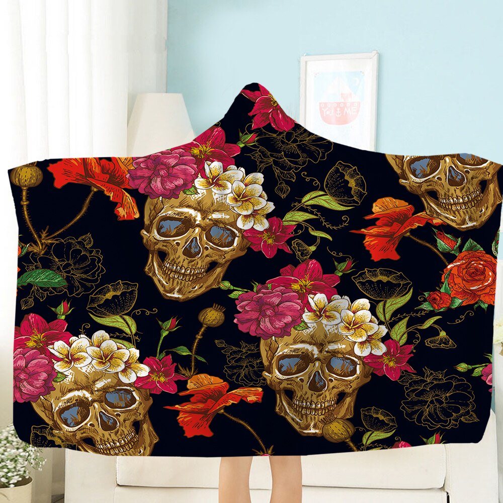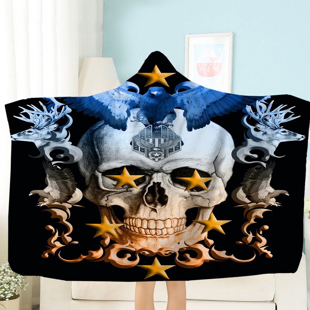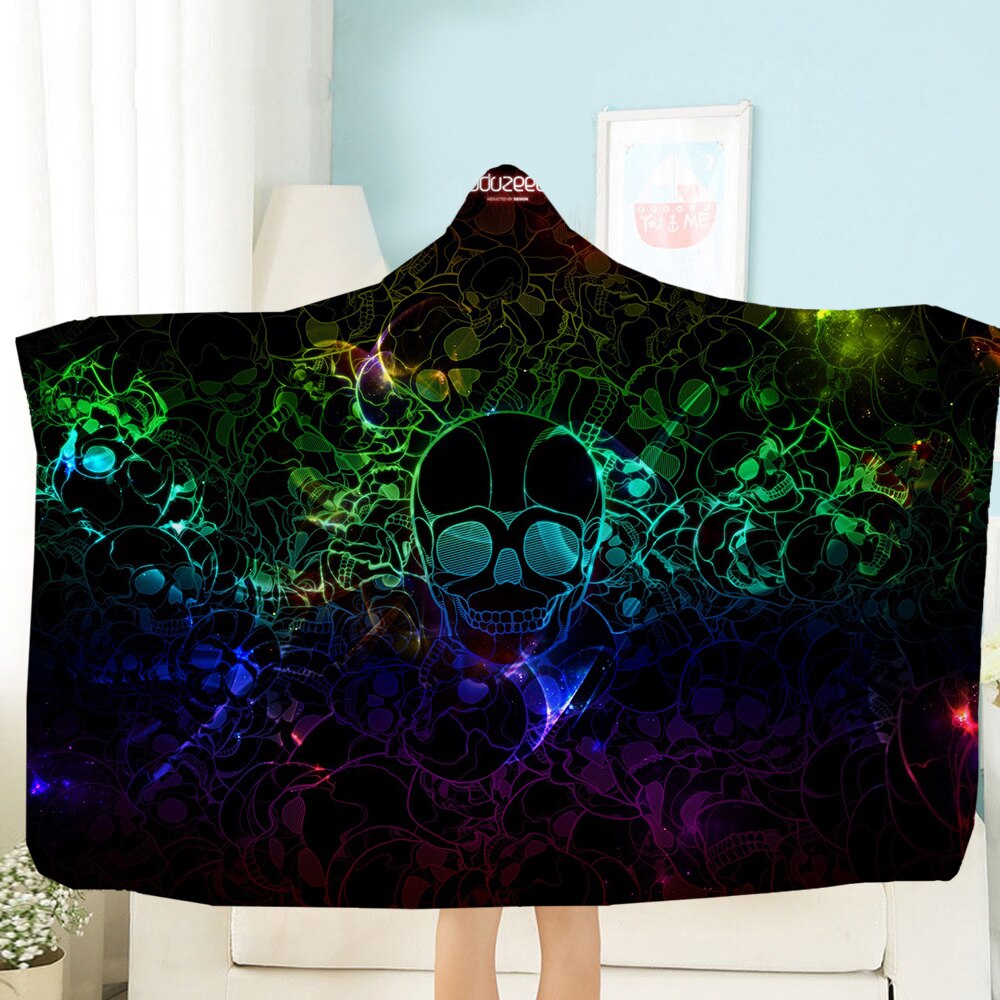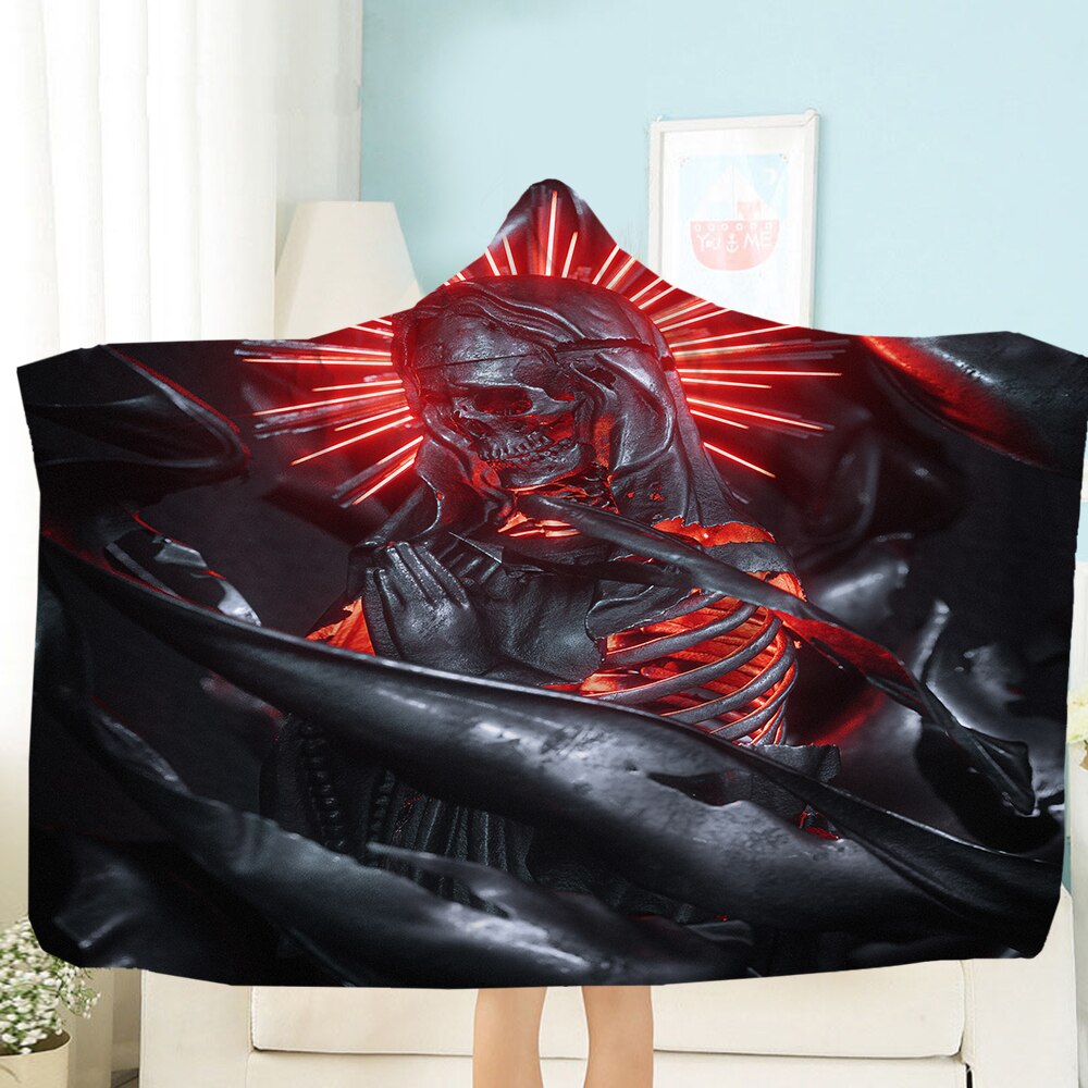 Terror Skull Blanket 3D Printing Hooded Blanket Fleece Blanket Black
