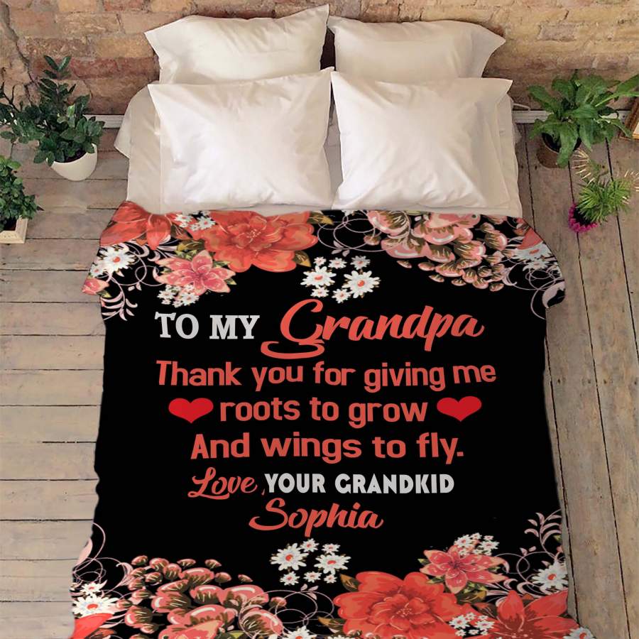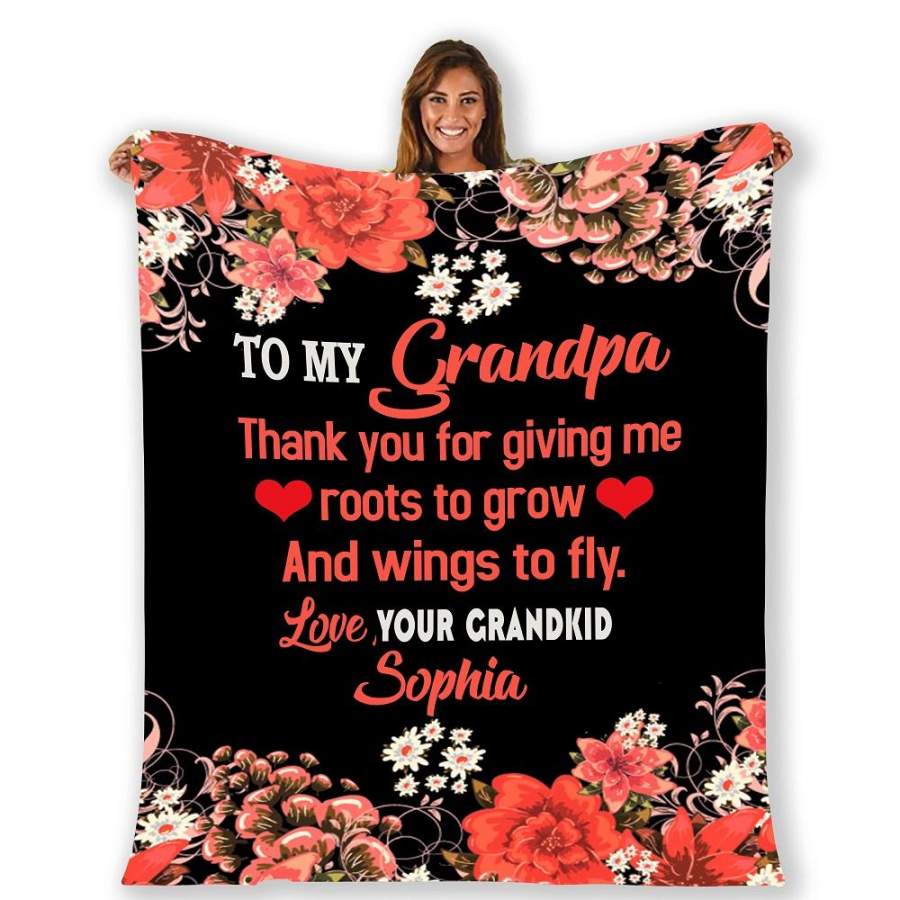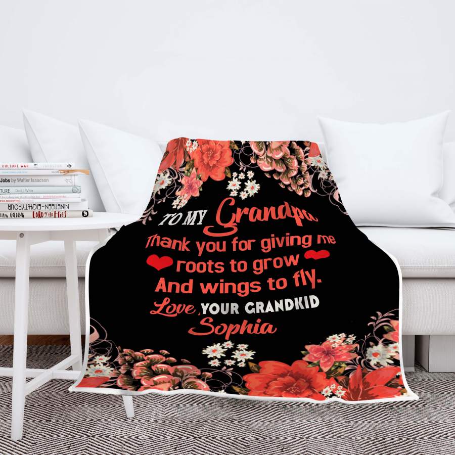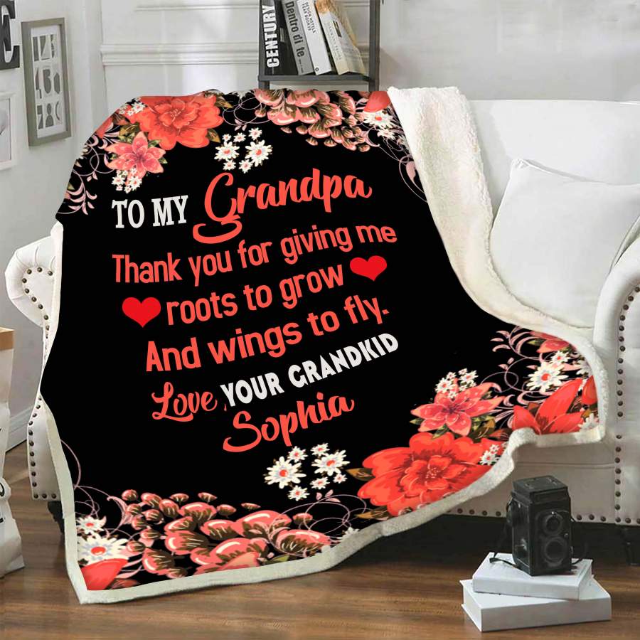 Thank You For Giving Me Roots To Grow Custom Blanket For Grandparents With Kids Names