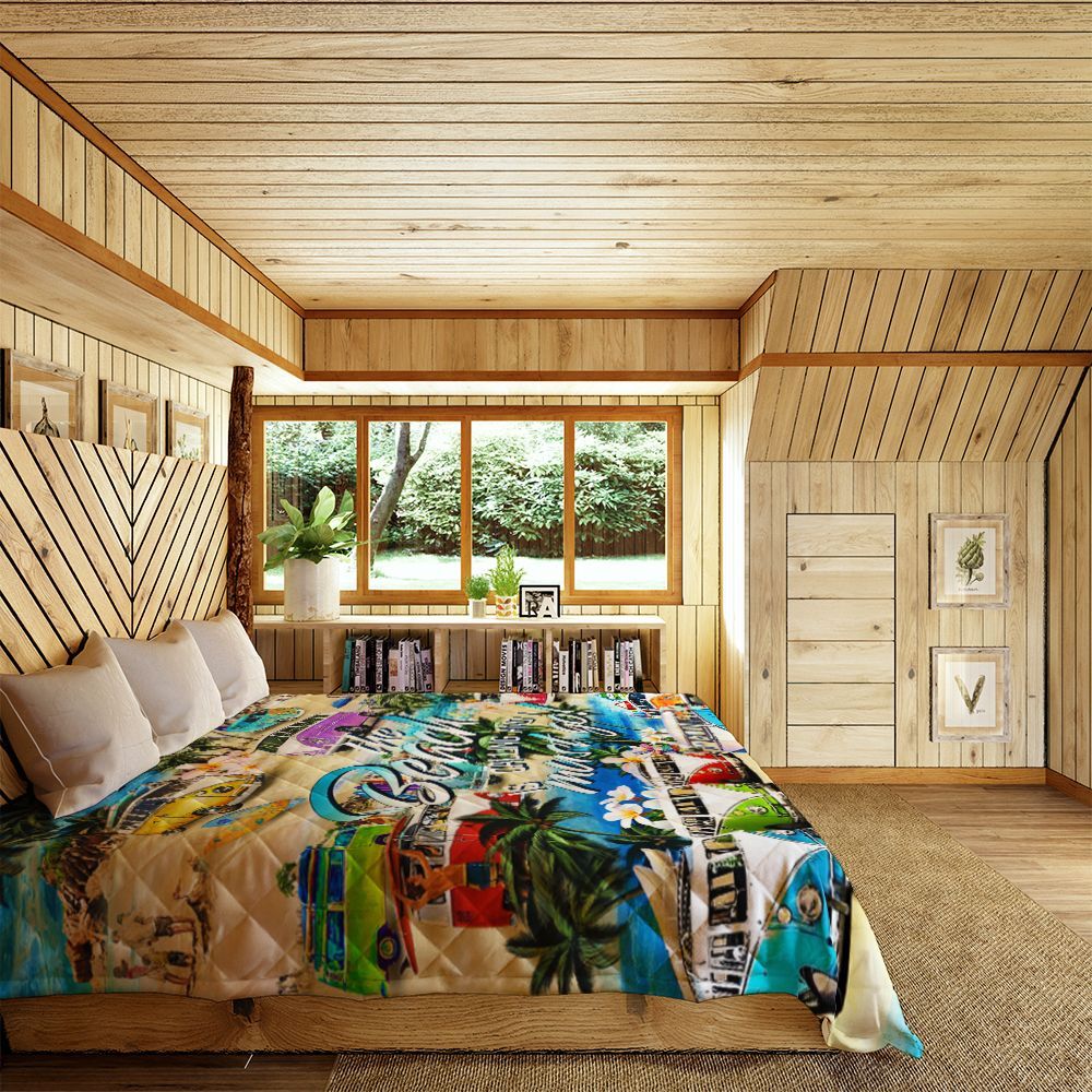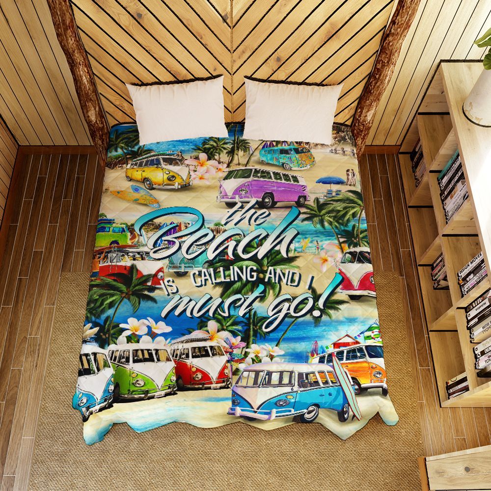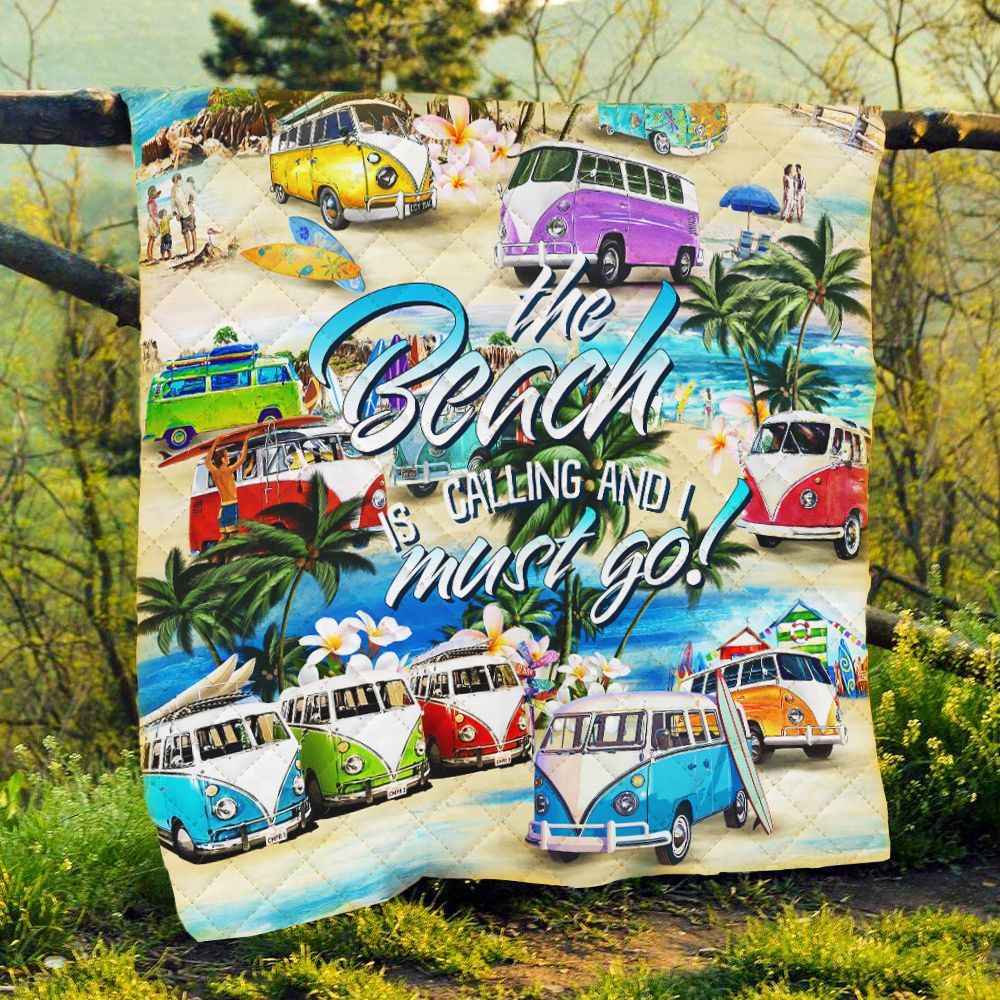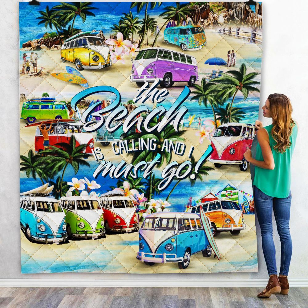 The Beach Is Calling And I Must Go. Hawaii Campers. VW Bus Quilt Blanket