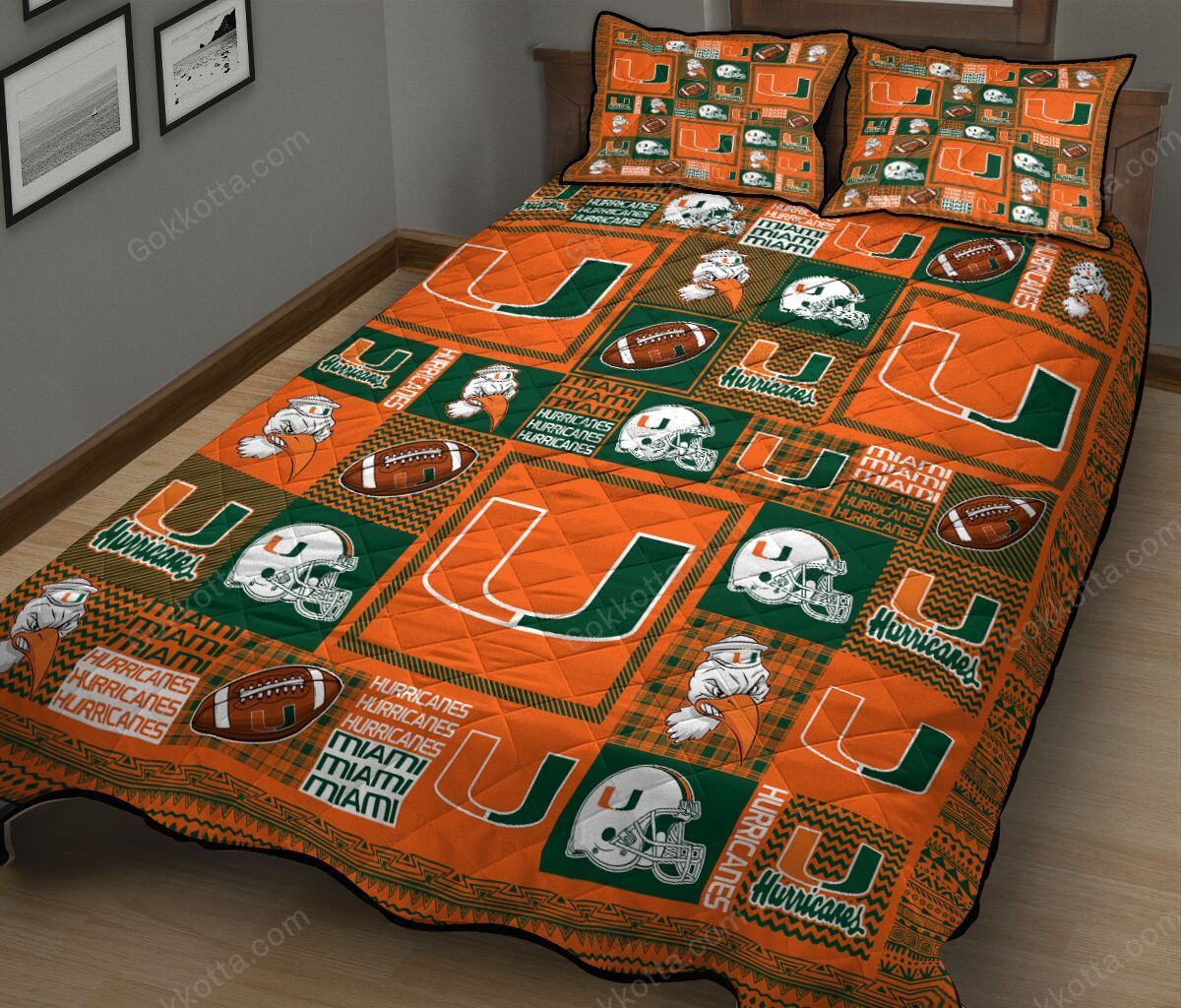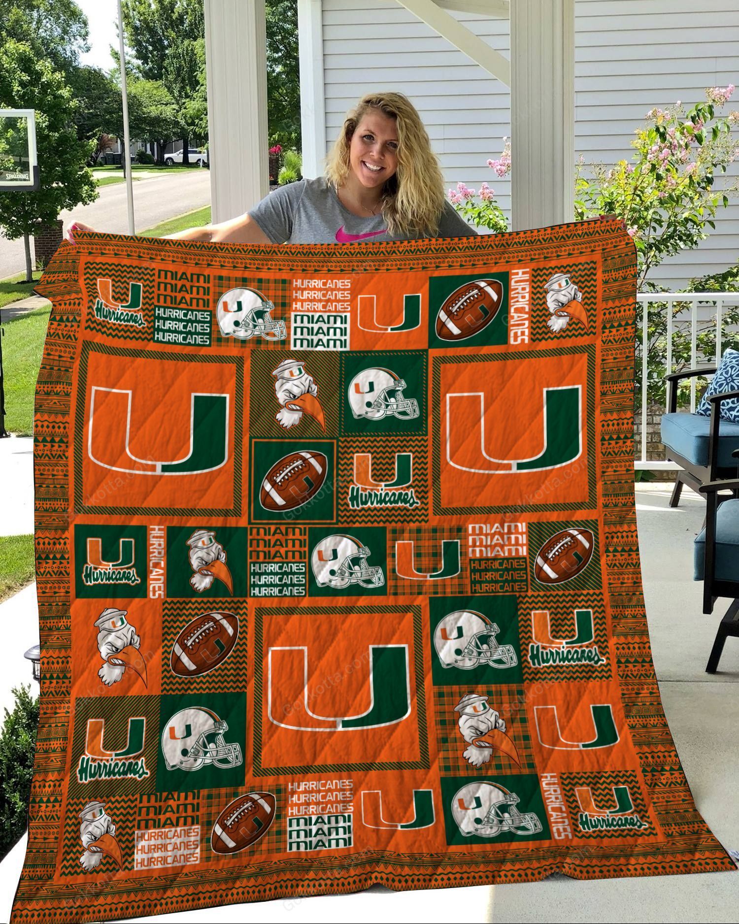THE20101536-QUIAAM4006 Miami Hurricanes Quilt Bed Set & Quilt Blanket
