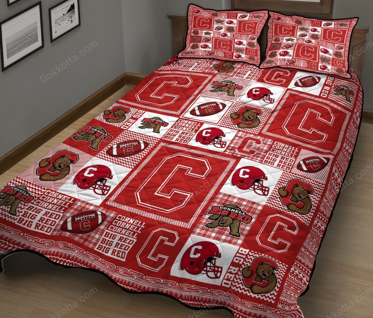 THE20101573-THQNCA4087 Cornell Big Red Quilt Bed Set & Quilt Blanket