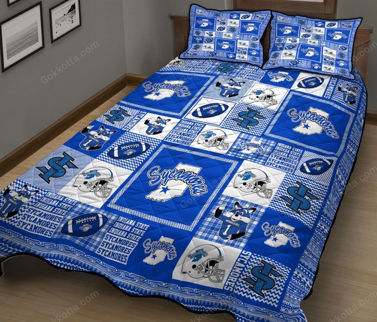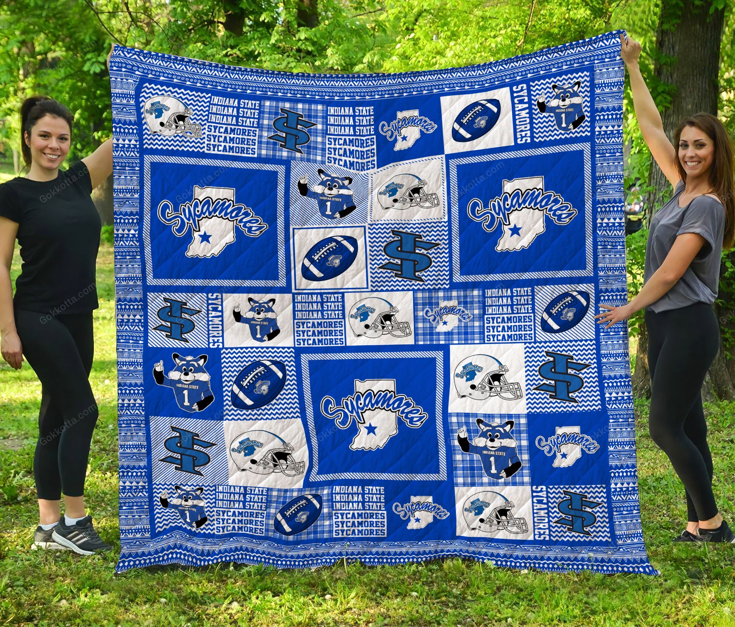 THE20101574-THQNCA4088 Indiana State Sycamores Quilt Bed Set & Quilt Blanket