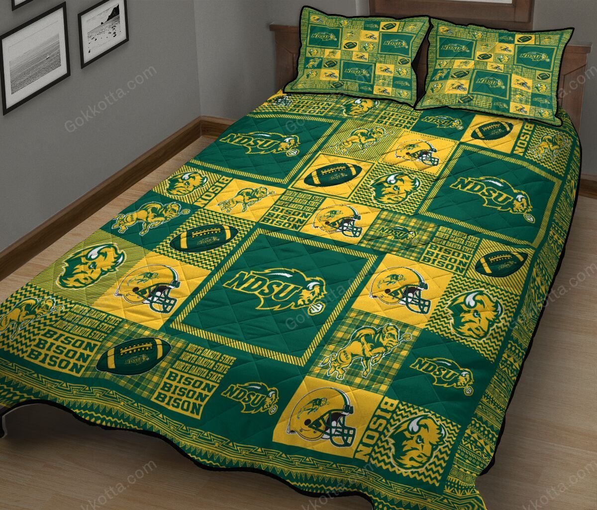 THE20101577-THQNCA4091 North Dakota State Bison Quilt Bed Set & Quilt Blanket