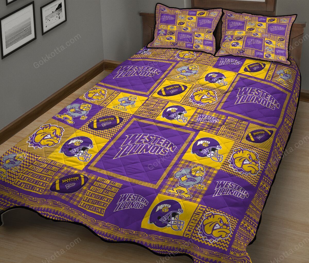 THE20101581-THQNCA4095 Western Illinois Leathernecks Quilt Bed Set & Quilt Blanket