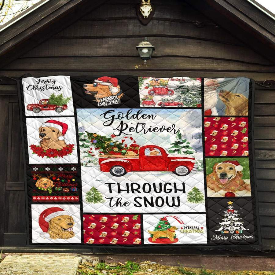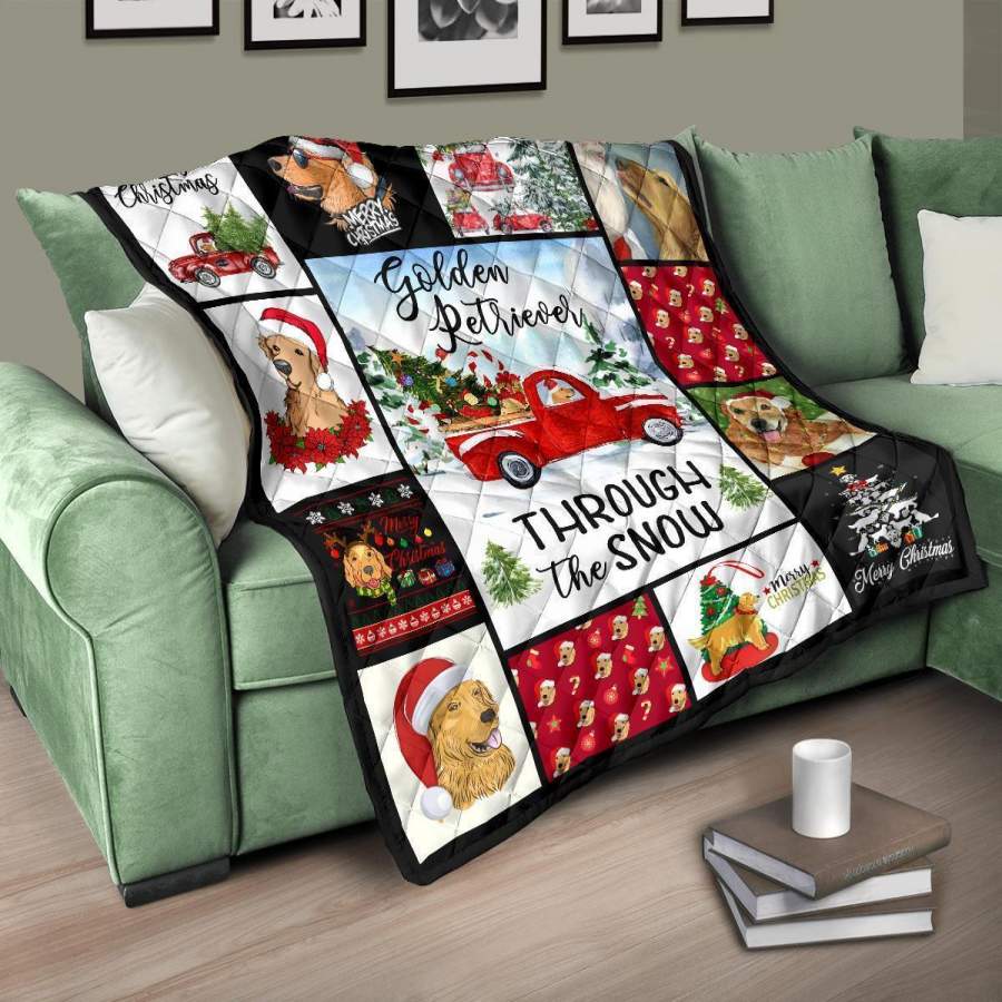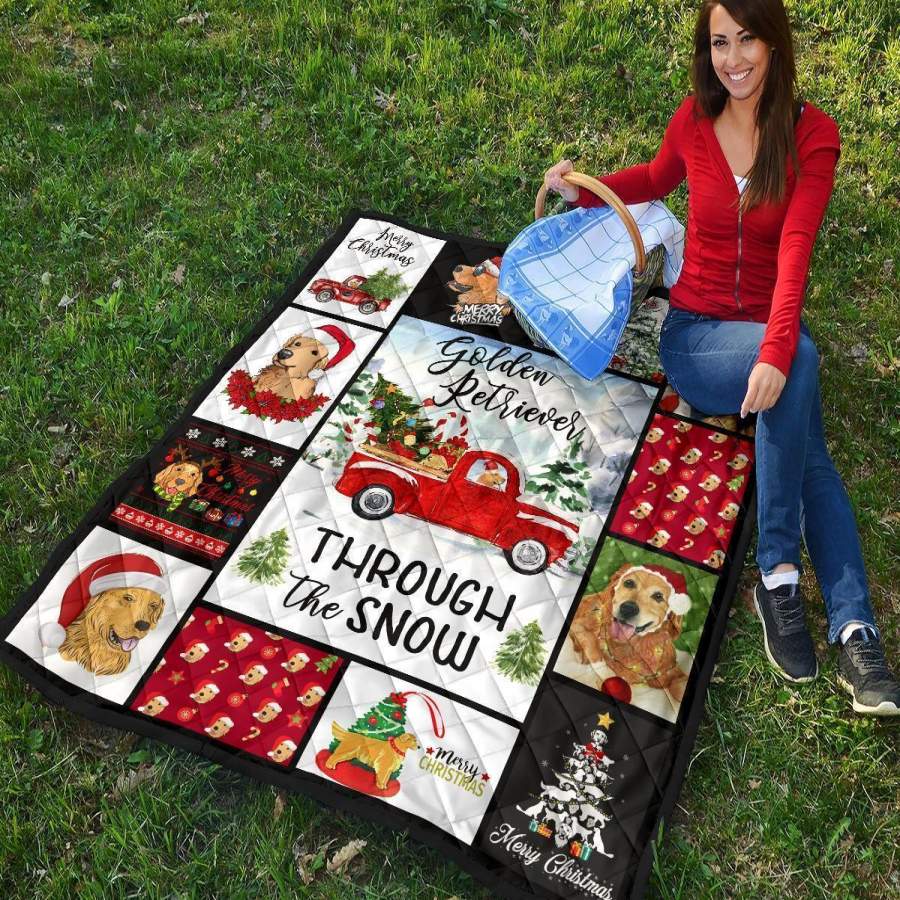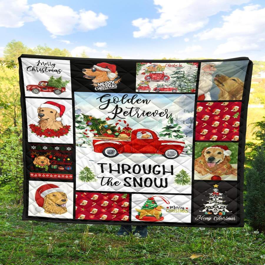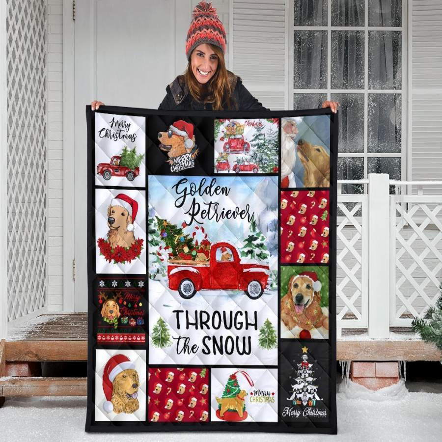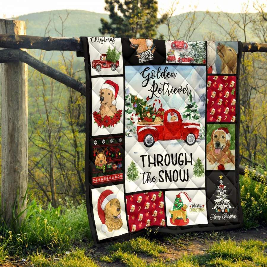 Though The Snow Golden Retriever Quilt Blanket Xmas Gift NH1911