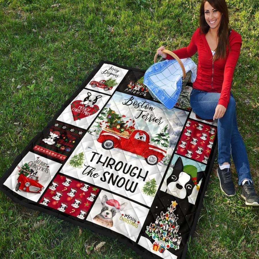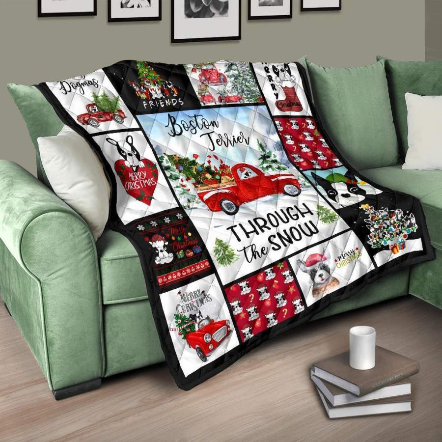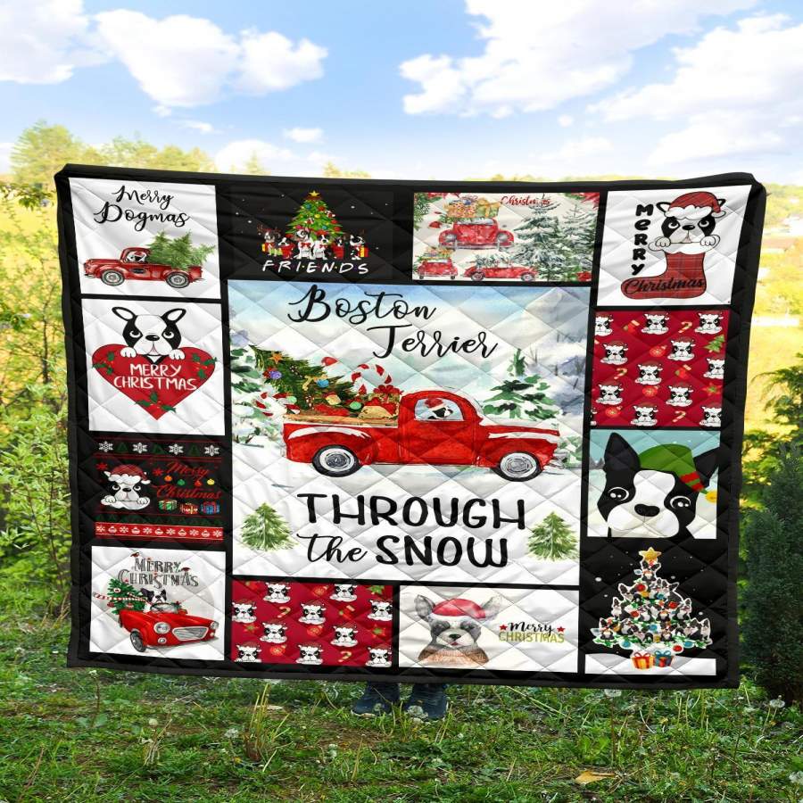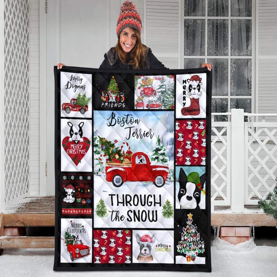 Through The Snow Boston Terrier Quilt Blanket Xmas Gift Idea DD19