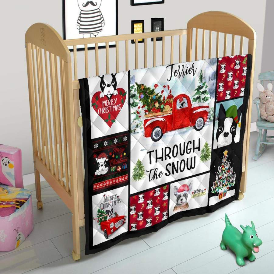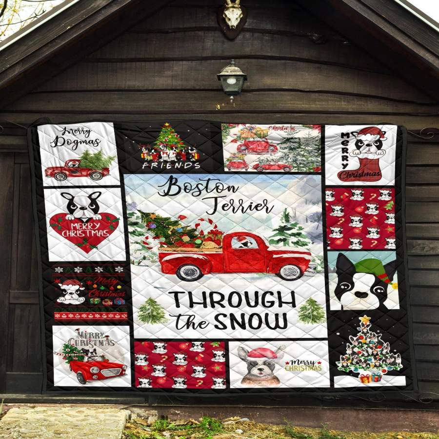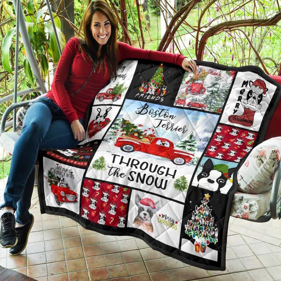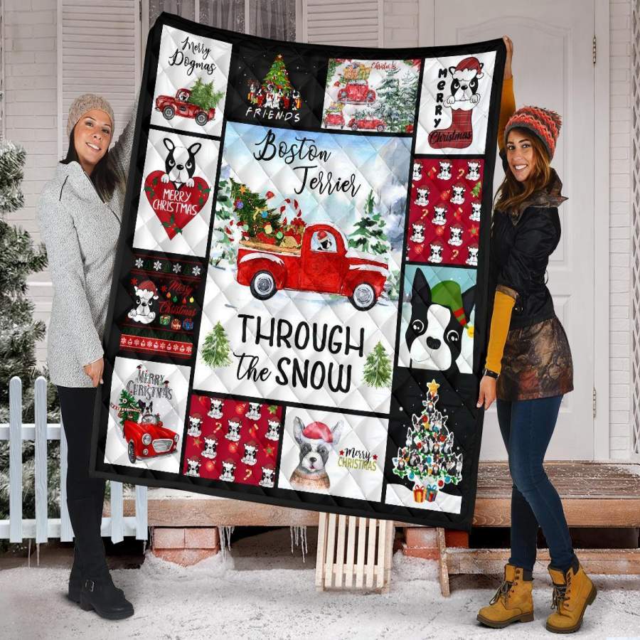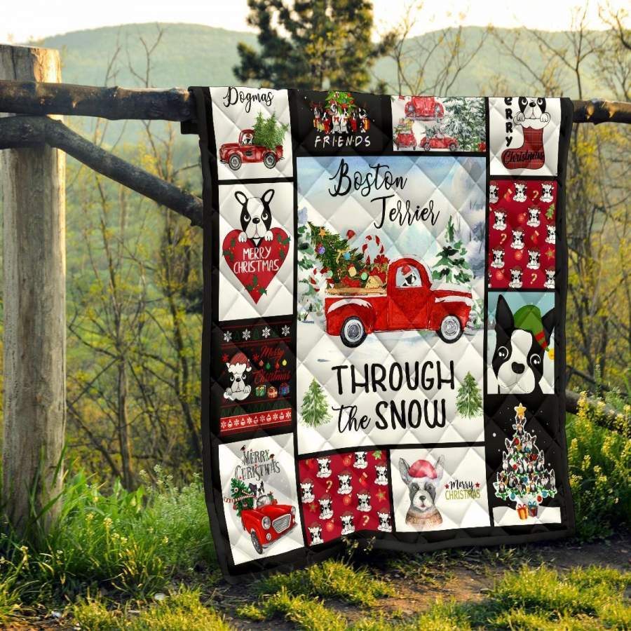 Through The Snow Boston Terrier Quilt Blanket Xmas Gift Idea DD19