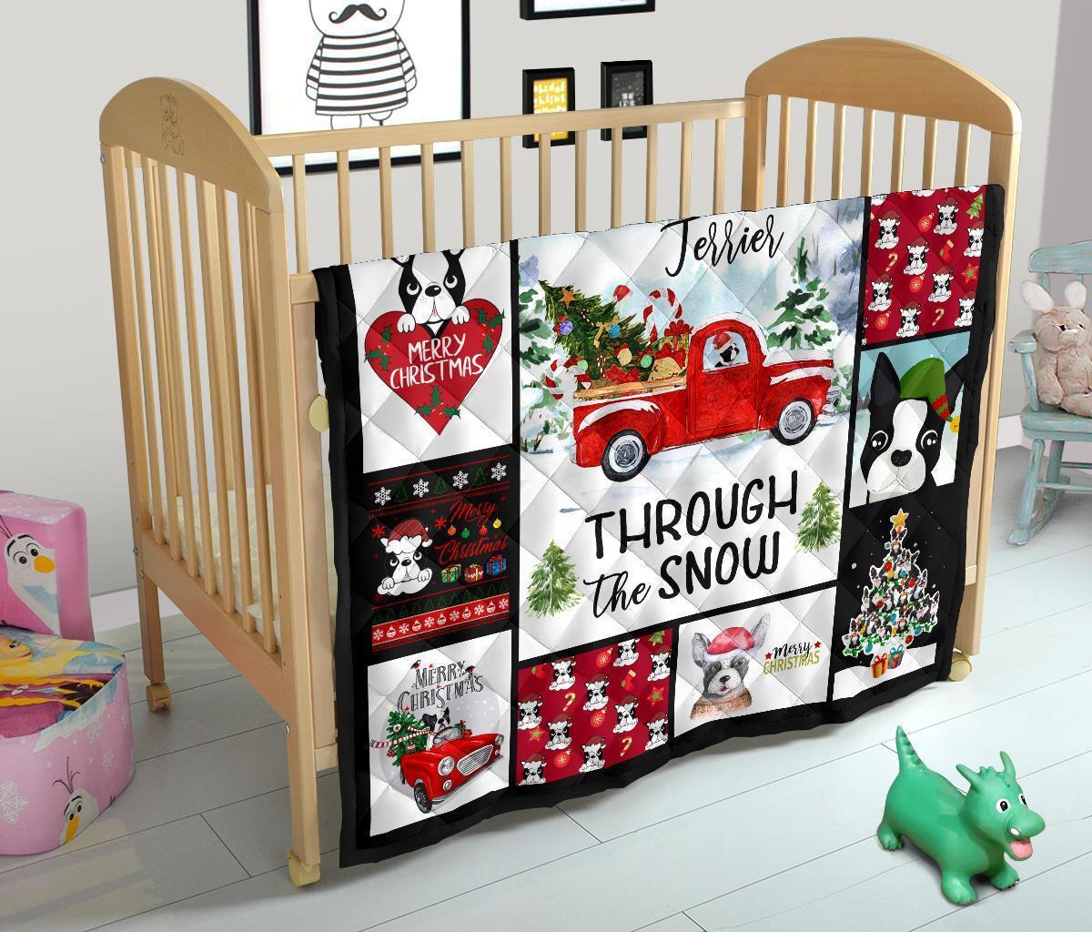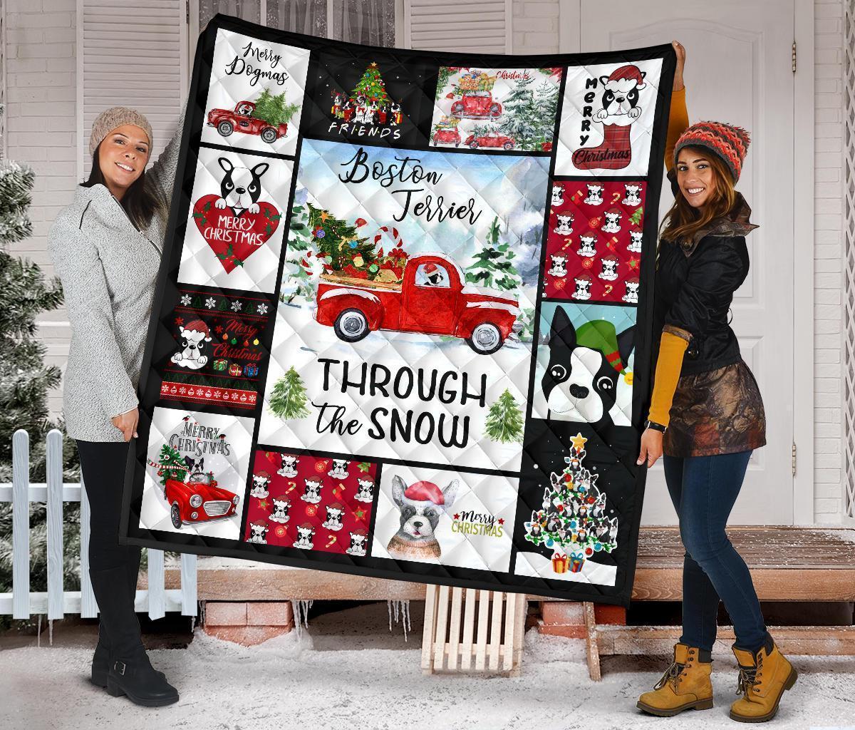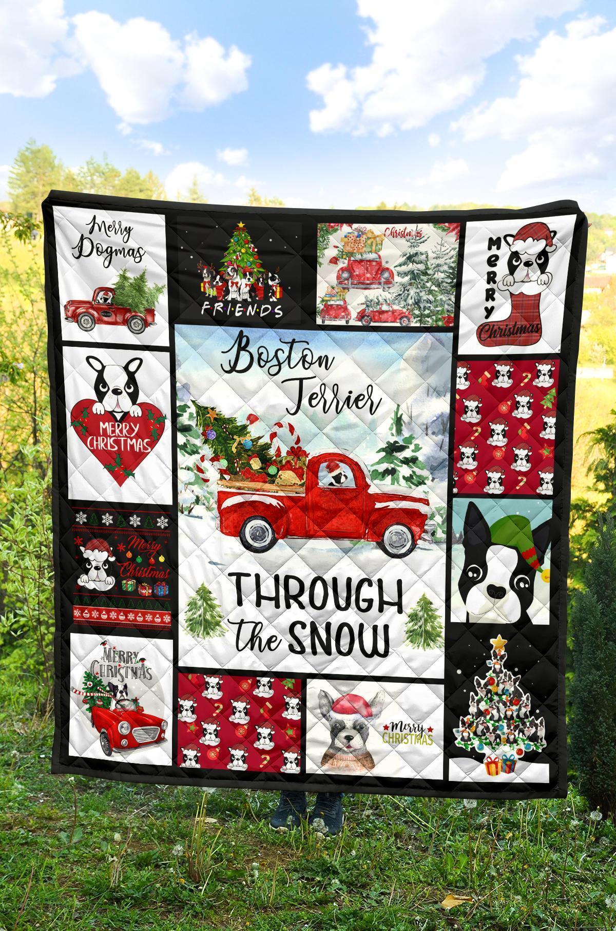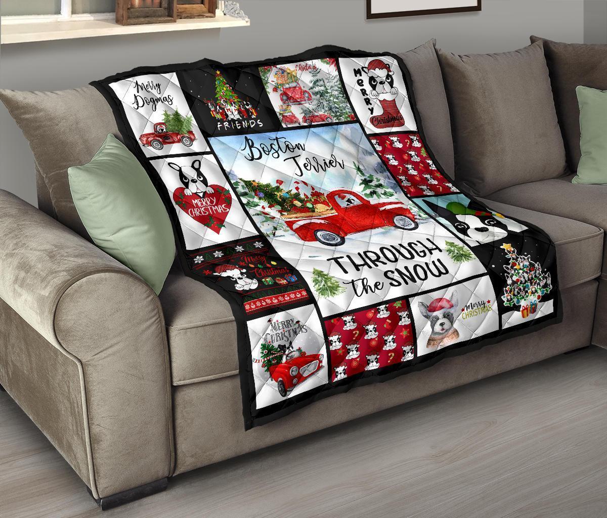 Through The Snow Boston Terrier Quilt Blanket Xmas