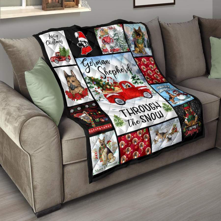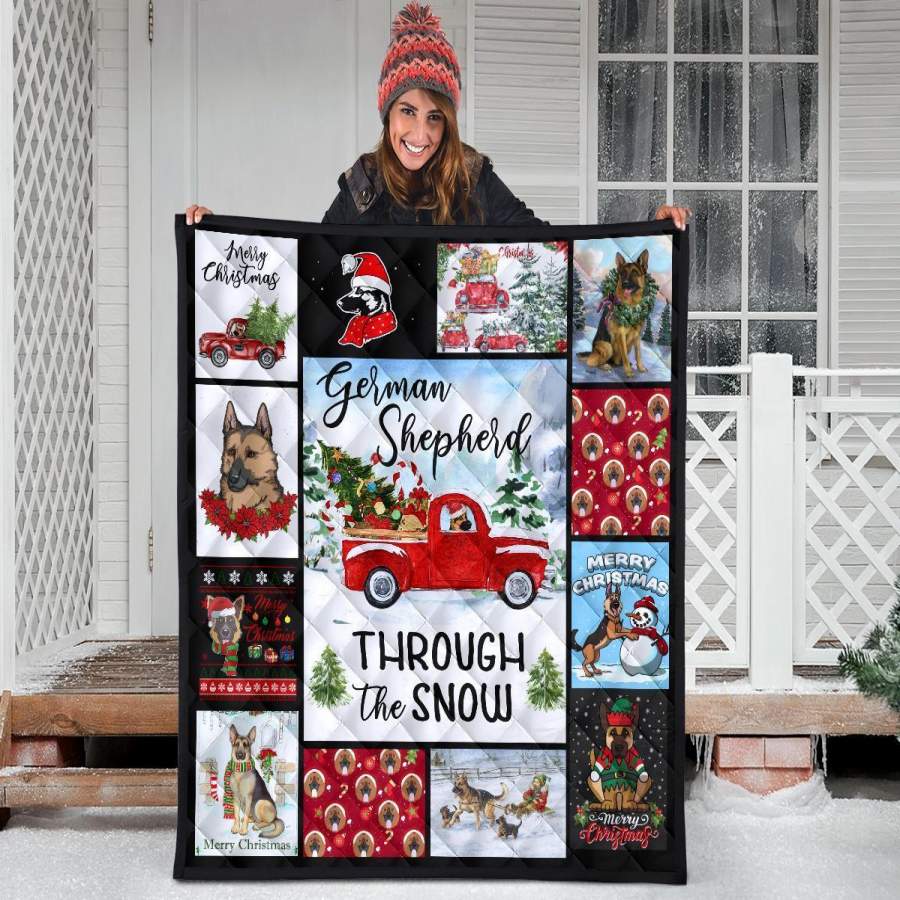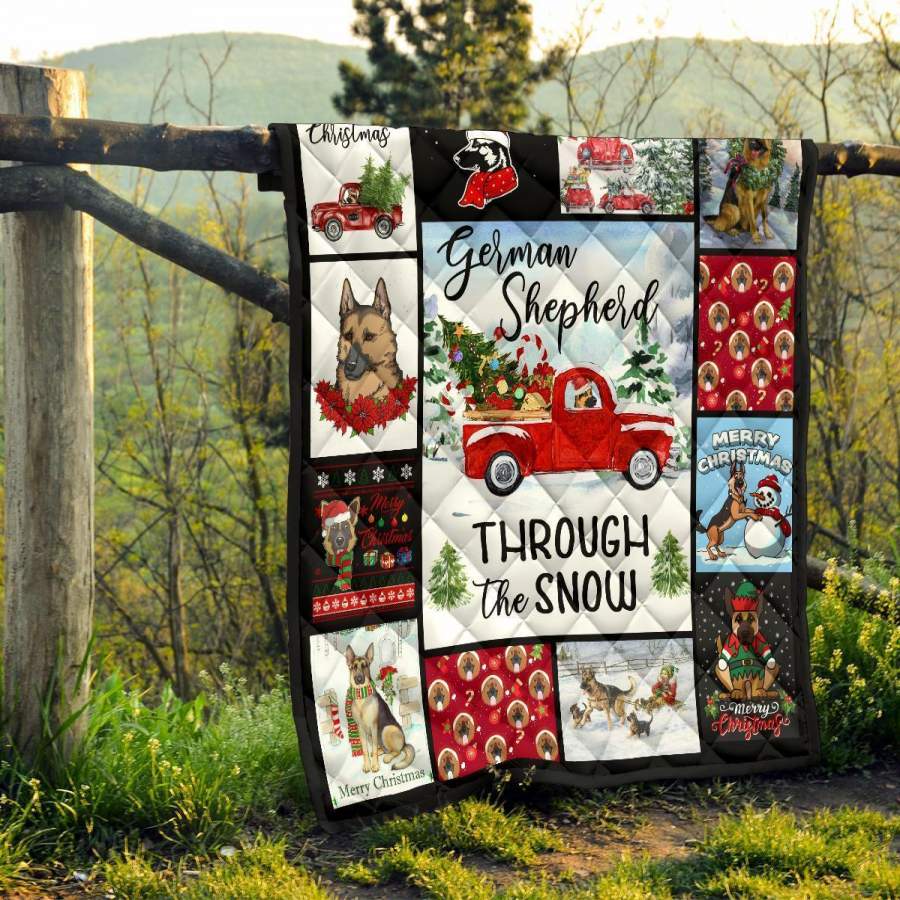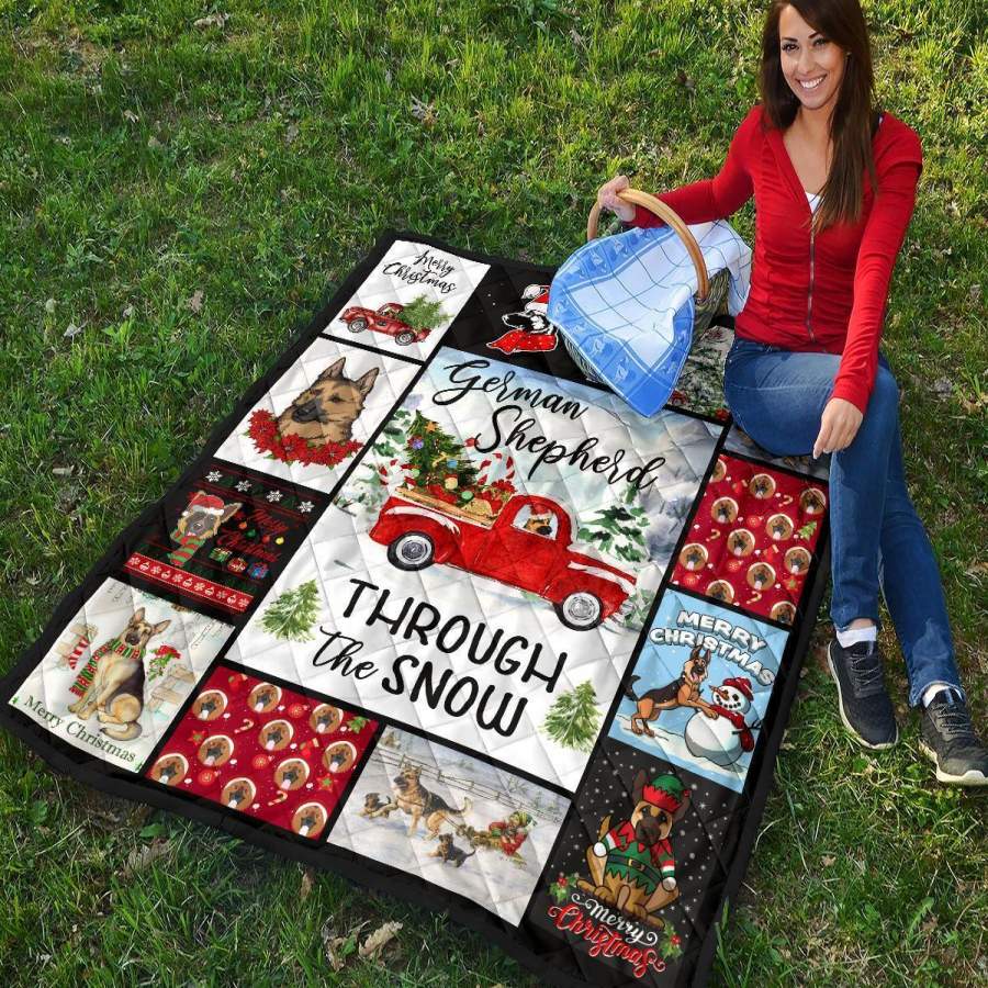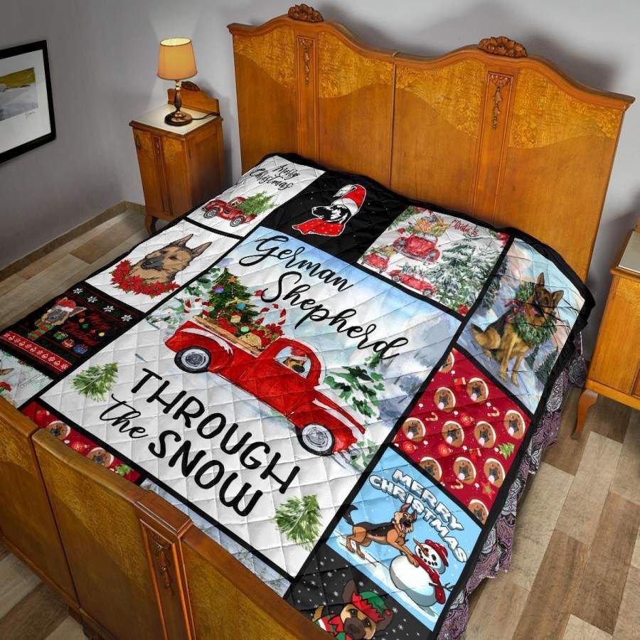 Through The Snow German Shepherd Quilt Blanket Xmas Gift DD1911