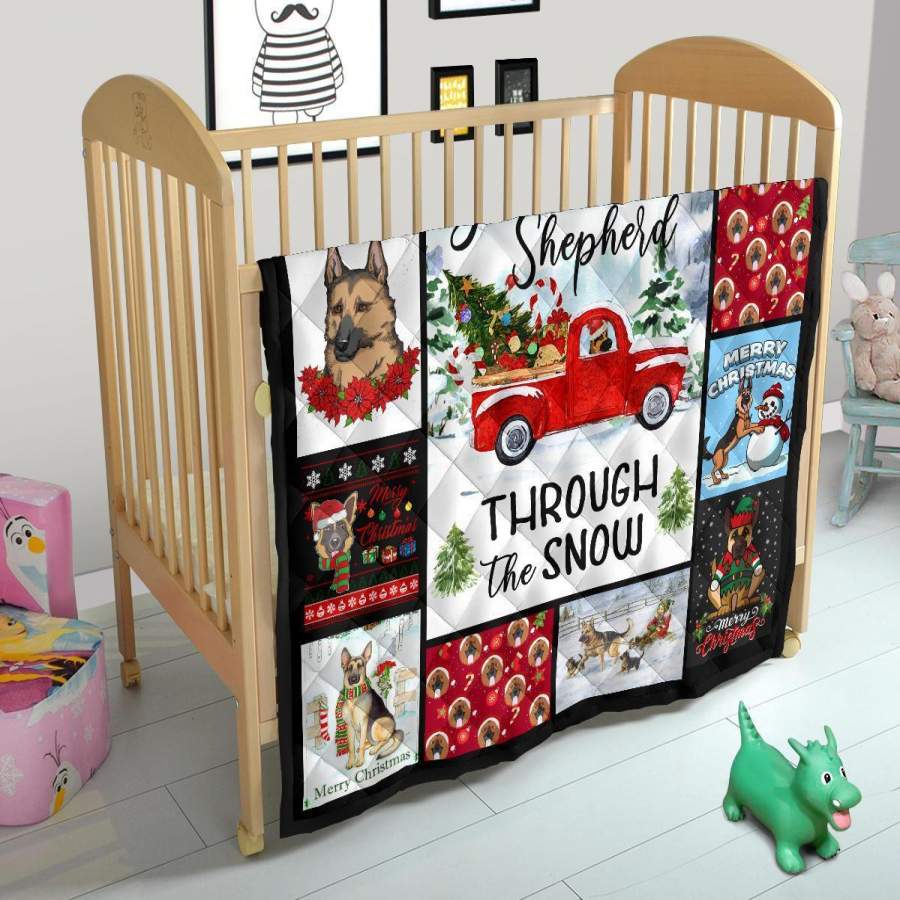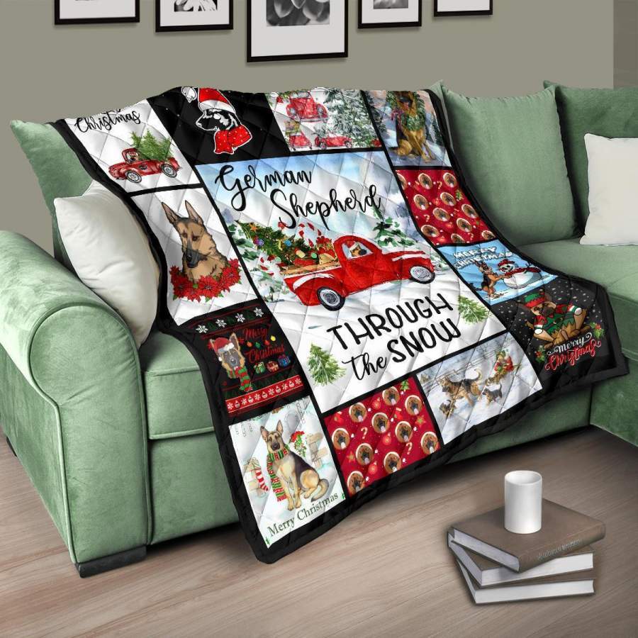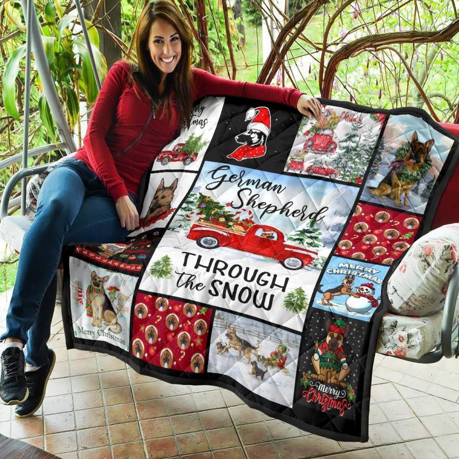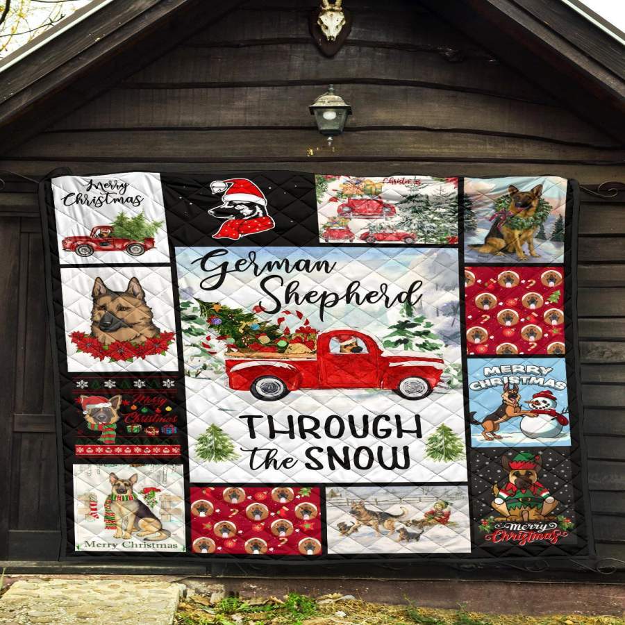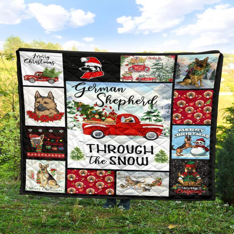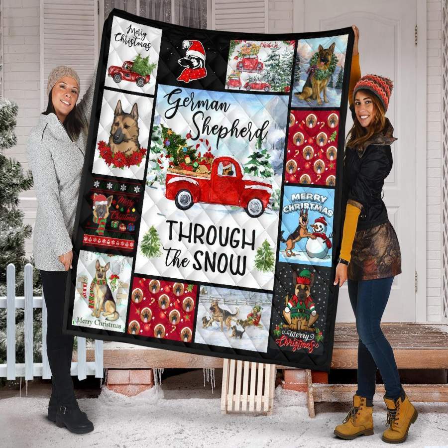 Through The Snow German Shepherd Quilt Blanket Xmas Gift DD1911