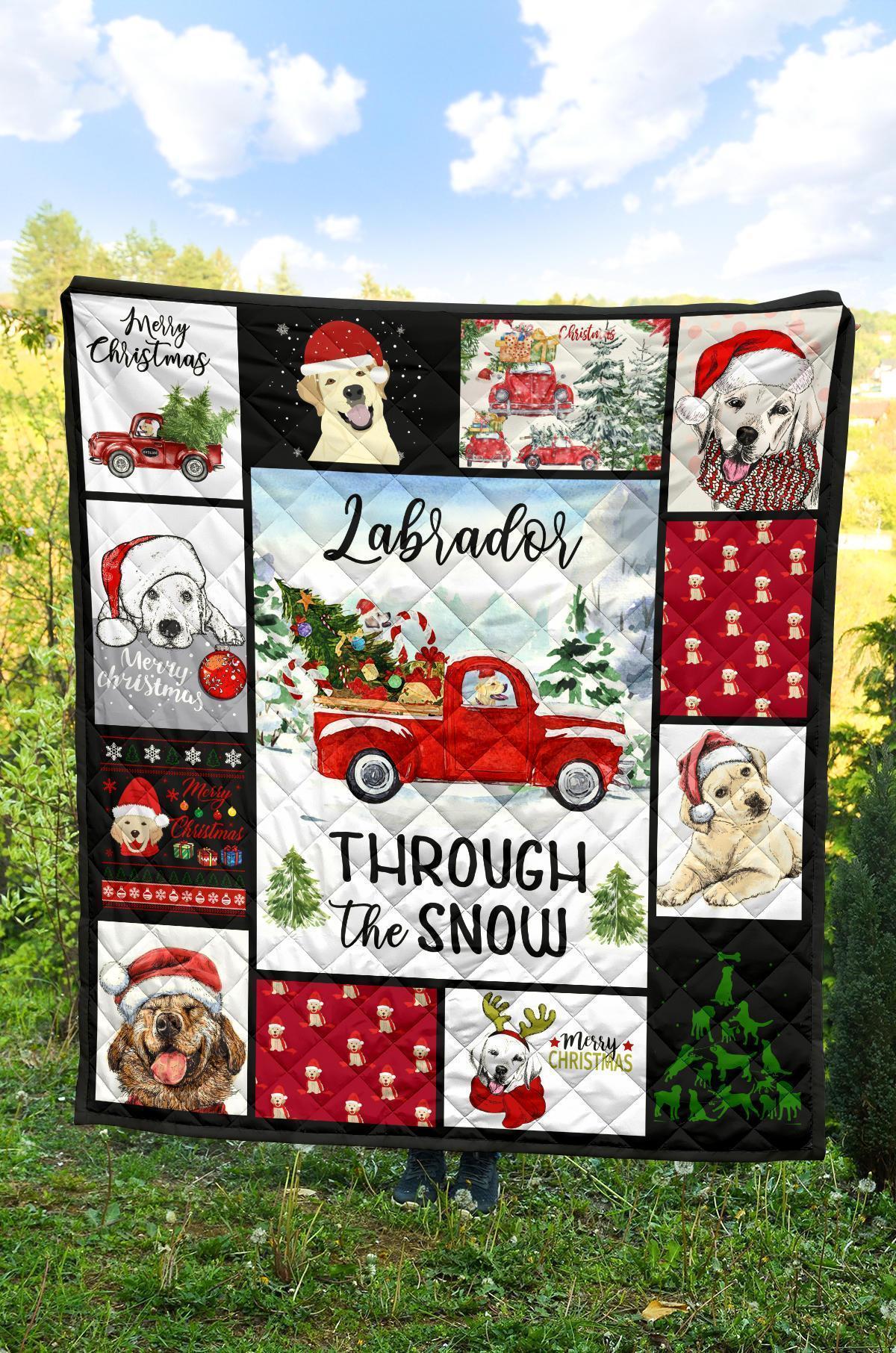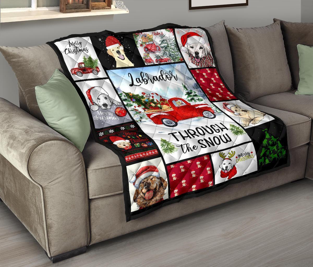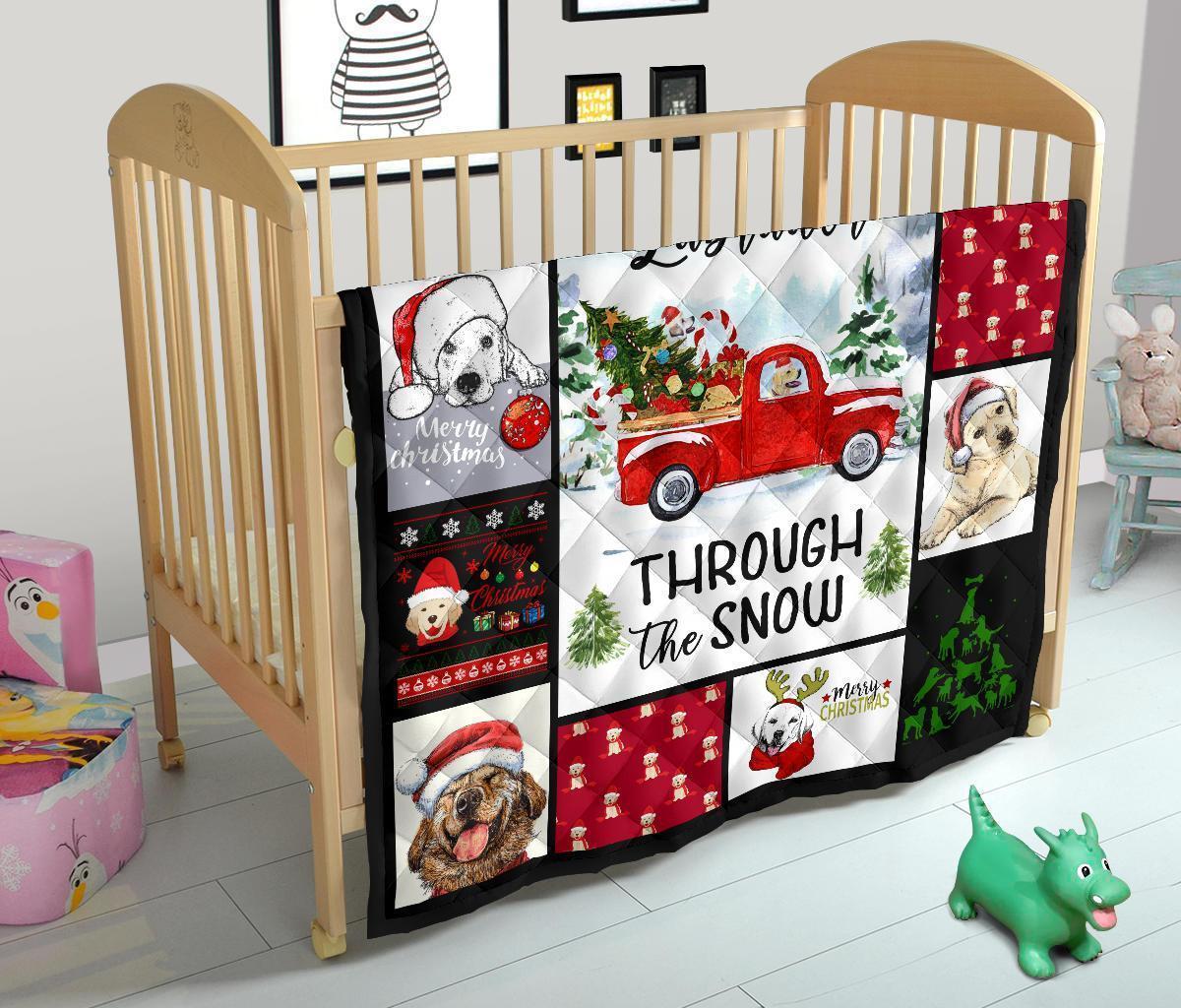 Through The Snow Labrador Dog Quilt Blanket Xmas