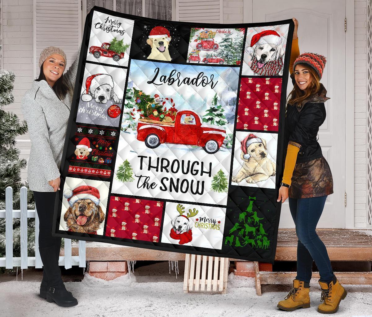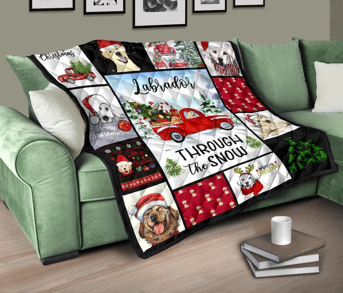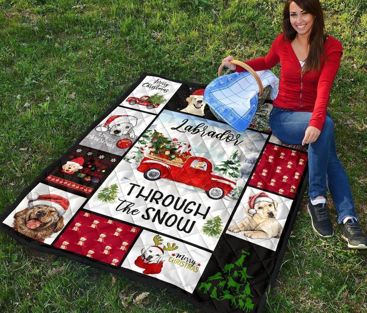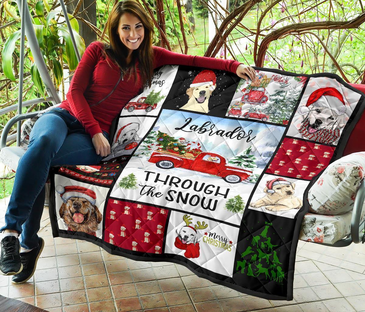 Through The Snow Labrador Dog Quilt Blanket Xmas