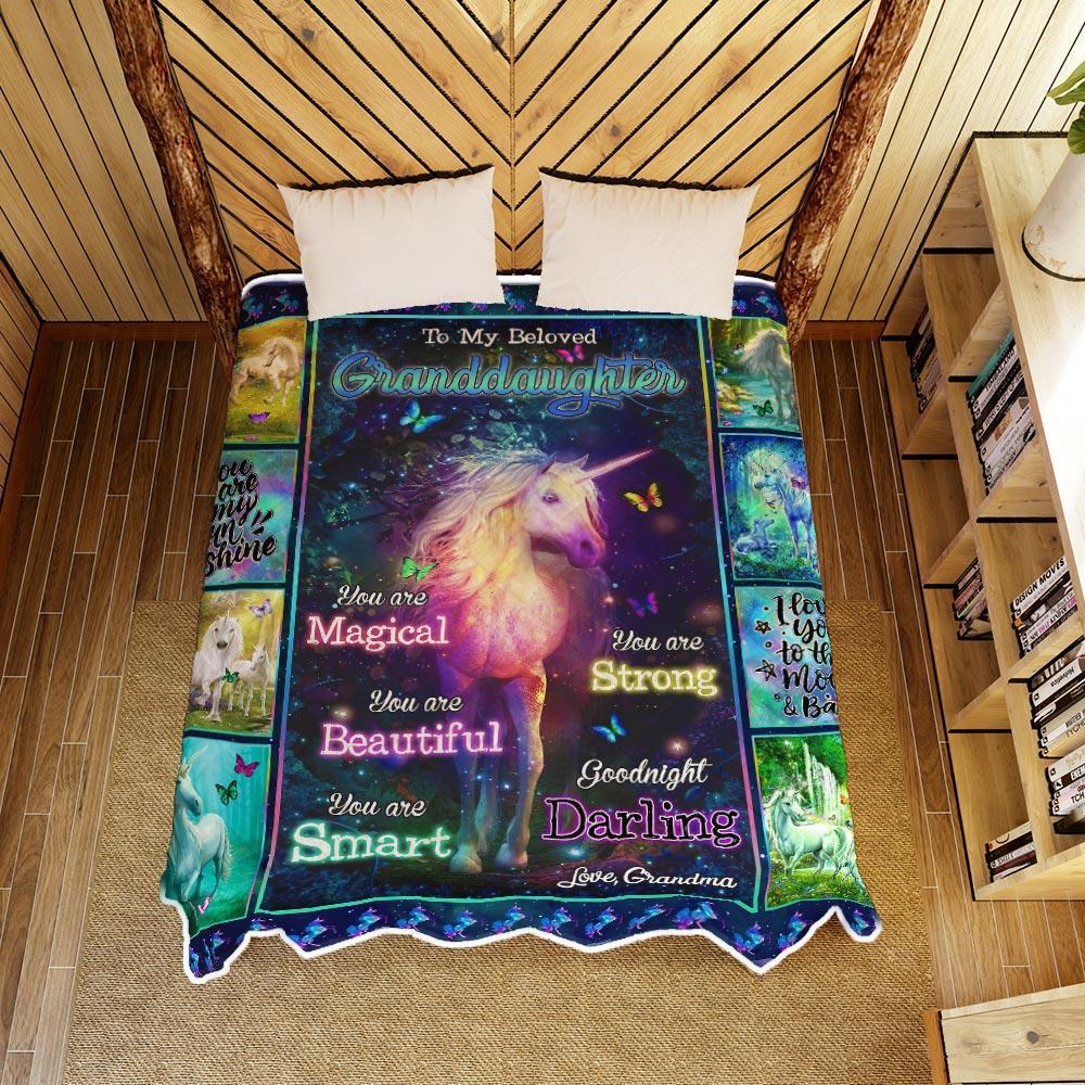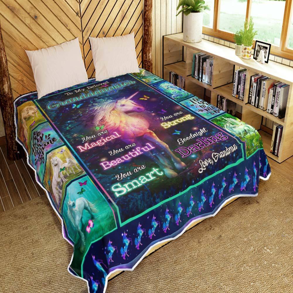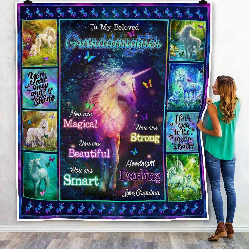 To My Beloved Granddaughter. Unicorn Quilt Blanket