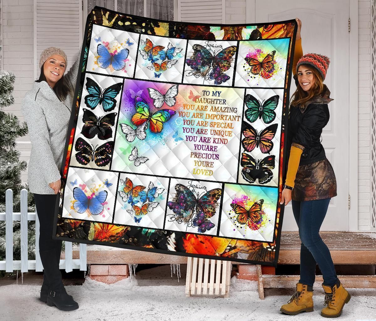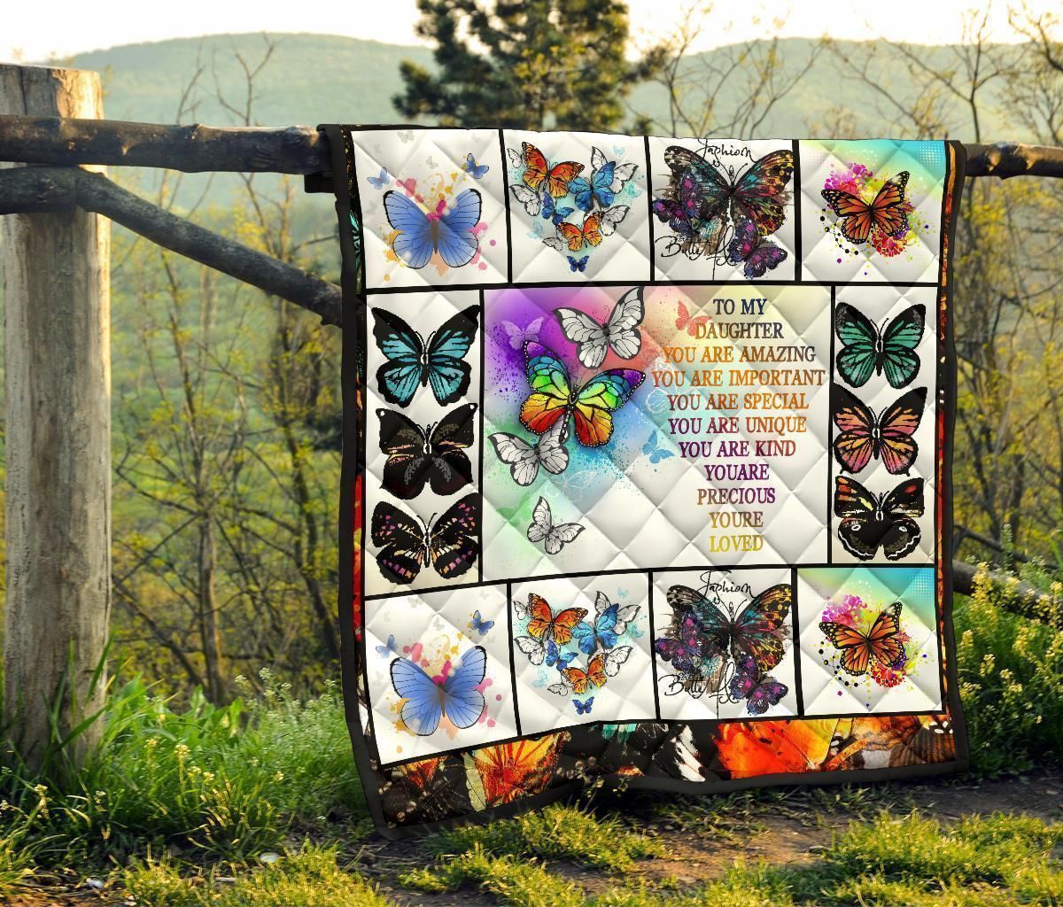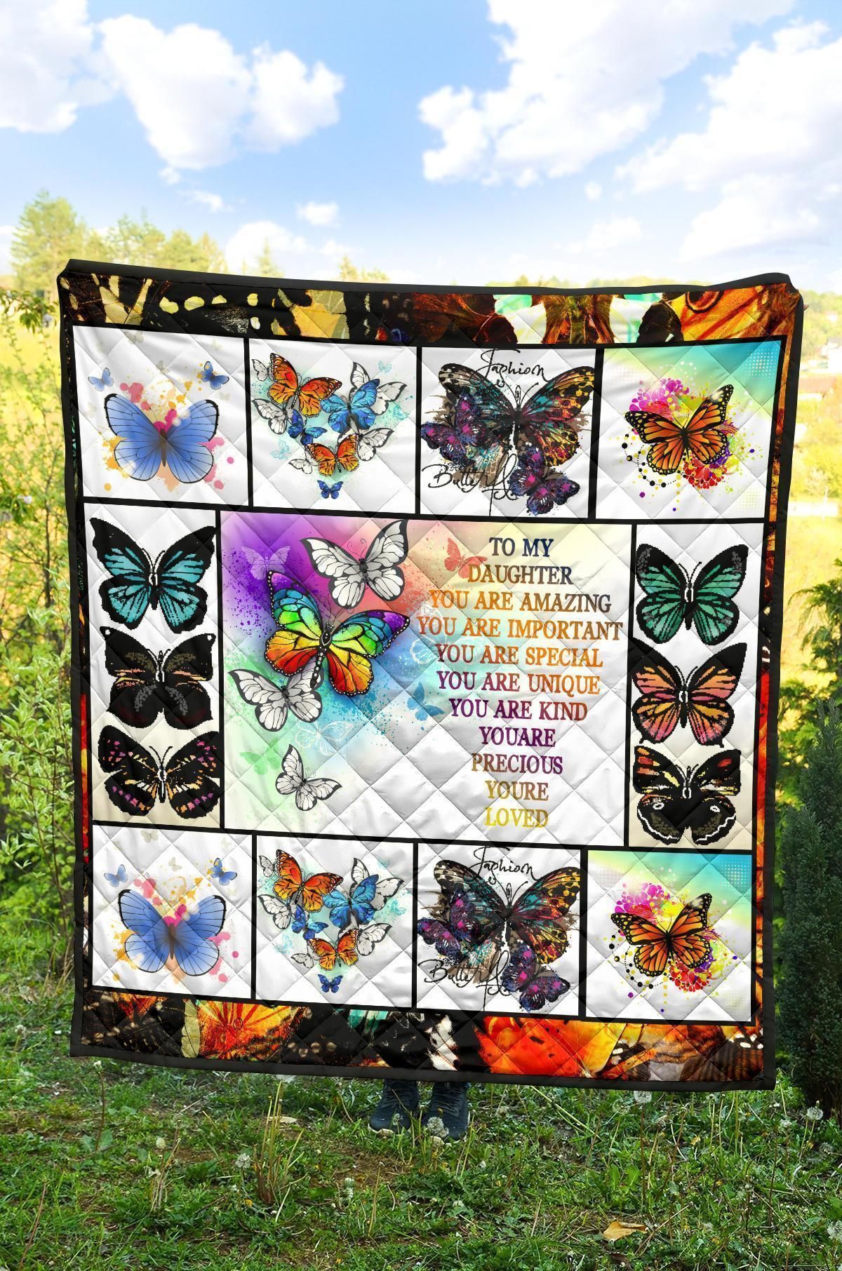 To My Daughter Butterfly Quilt Blanket Gift From Dad Mom