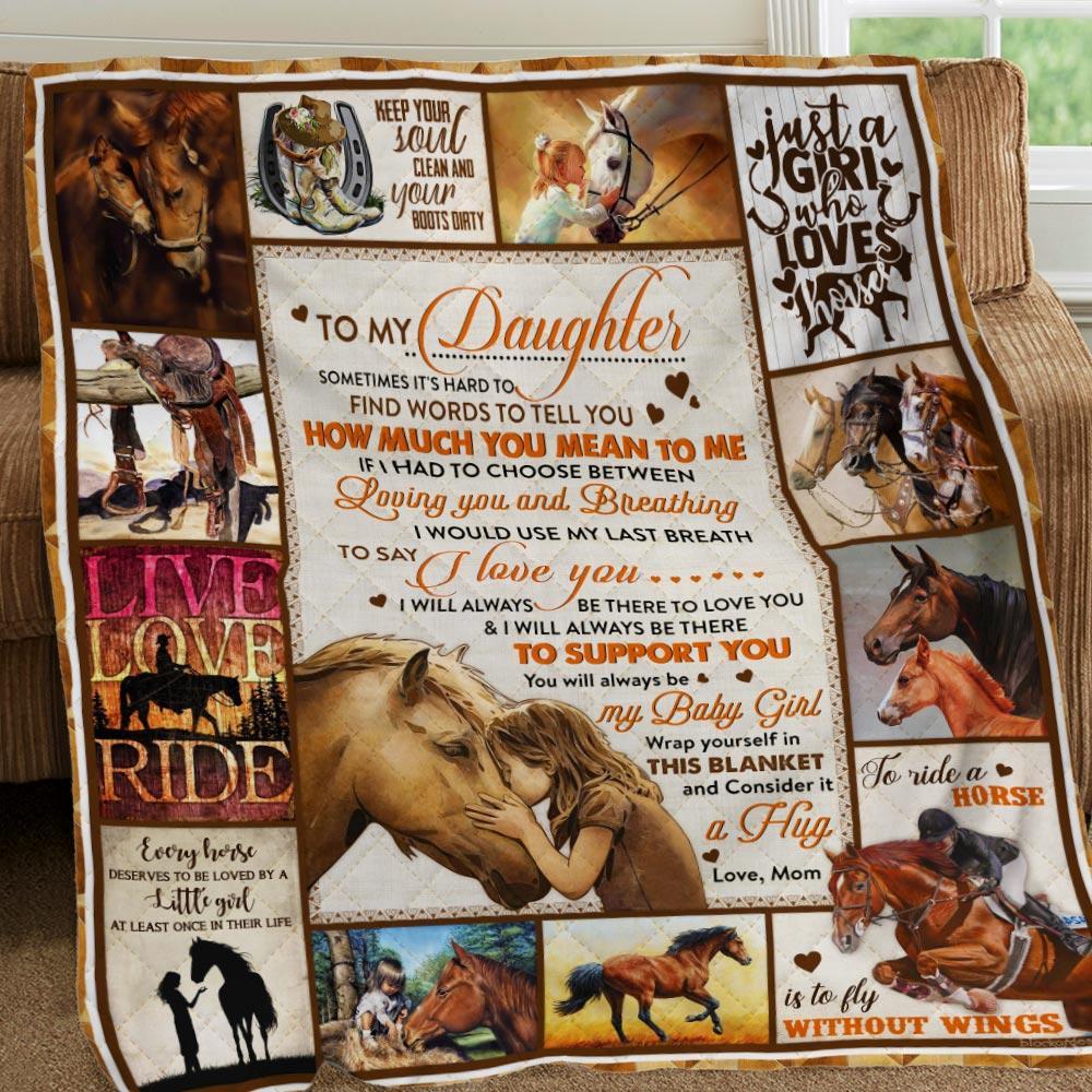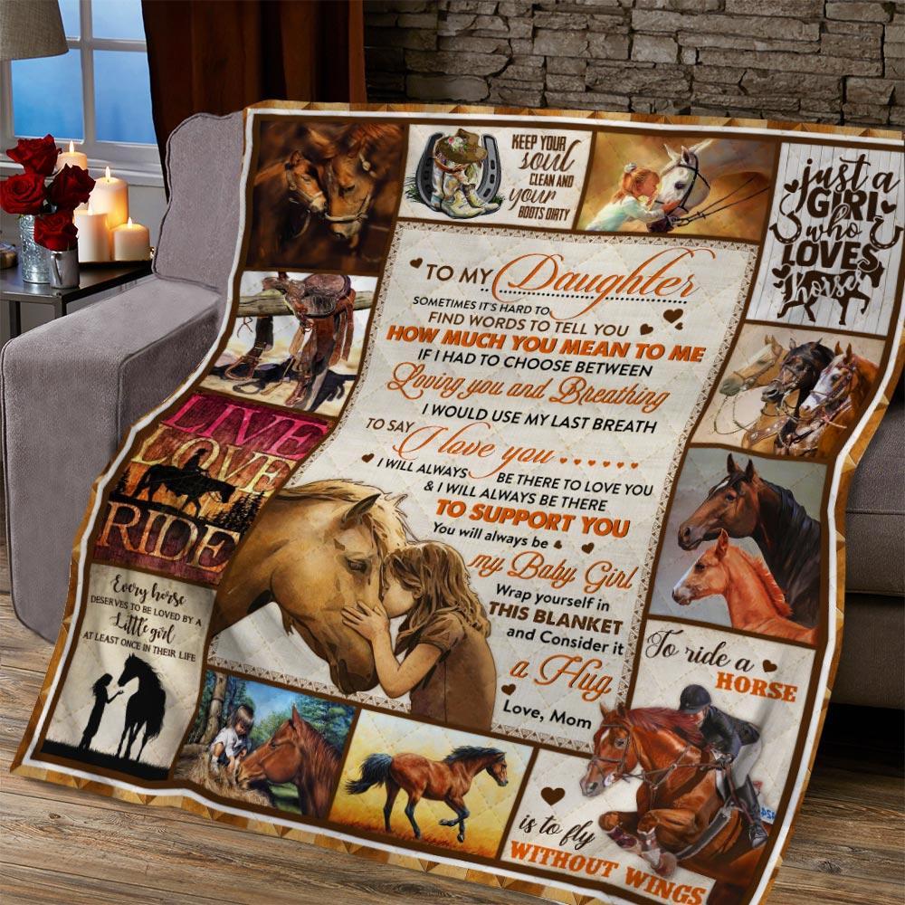 To My Daughter, Horse, Love Mom Quilt Blanket