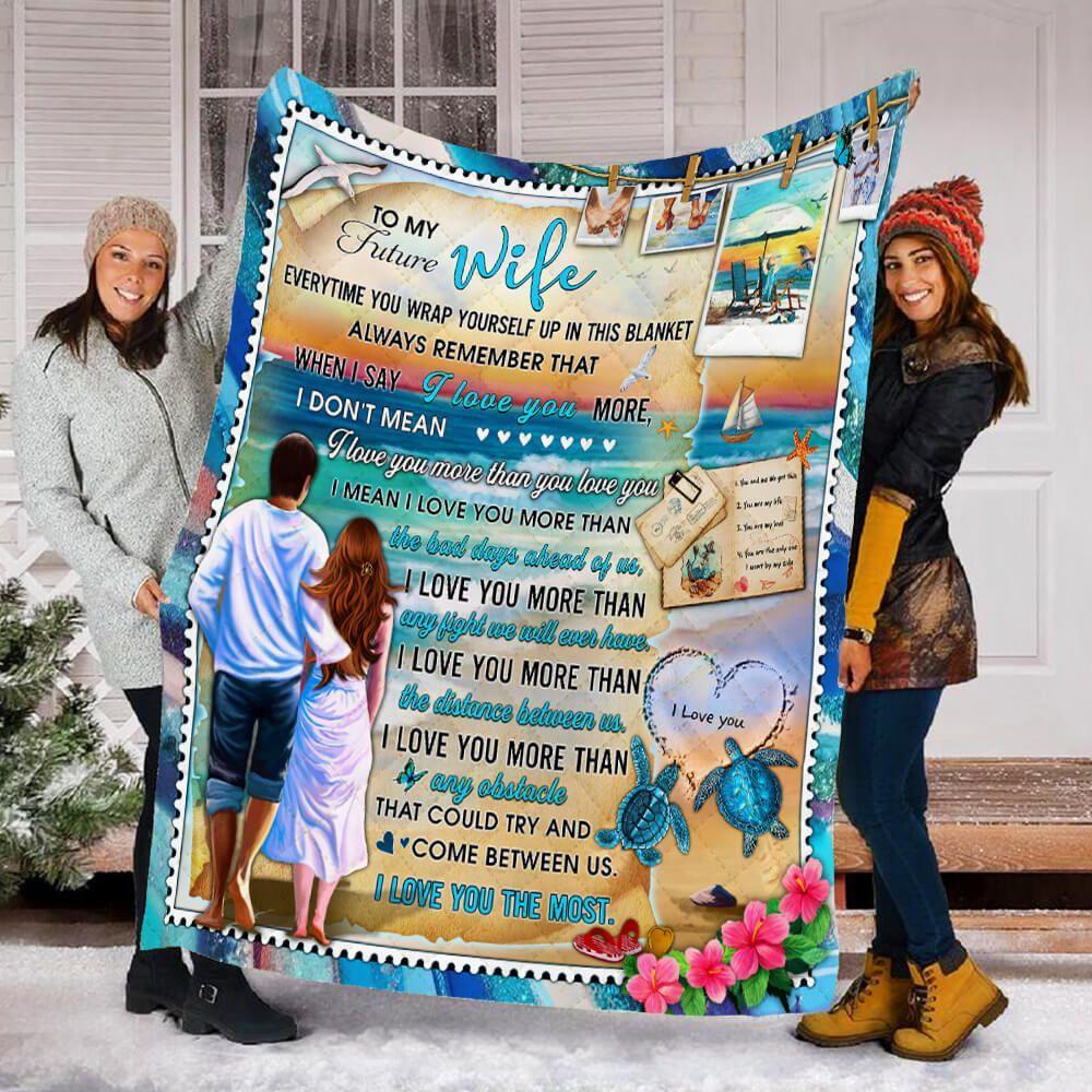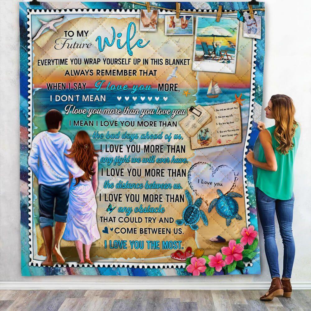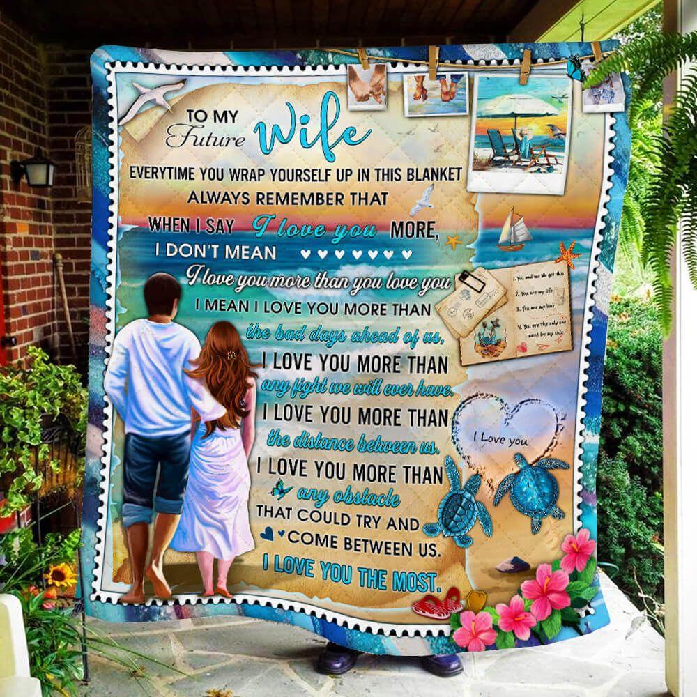 To My Future Wife Quilt Blanket Sea Turtle Beach Coast I Love You The Most Quilt