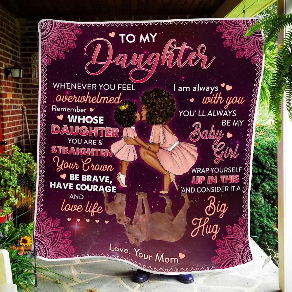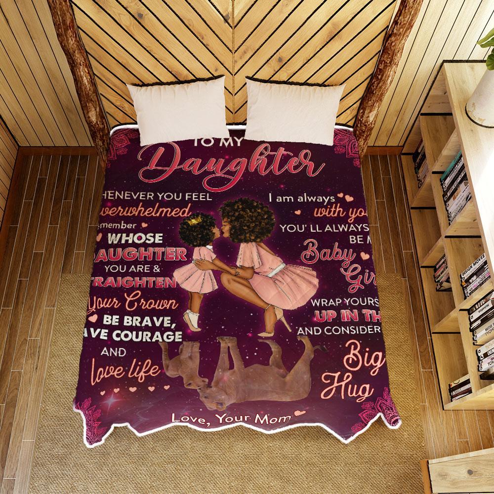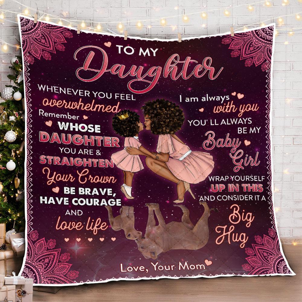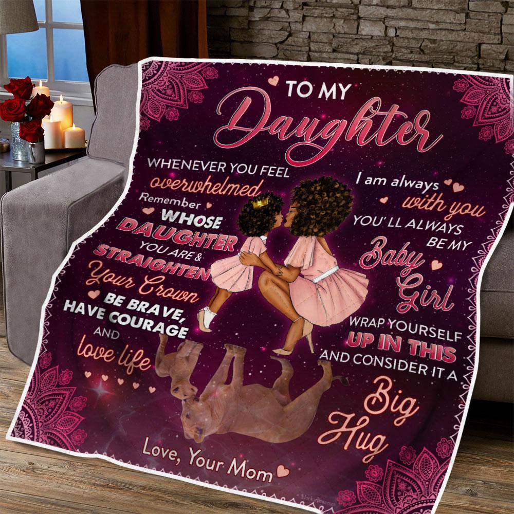 To My Girl, Remember Whose Daughter You Are, Love Mom, Black Woman Quilt Blanket