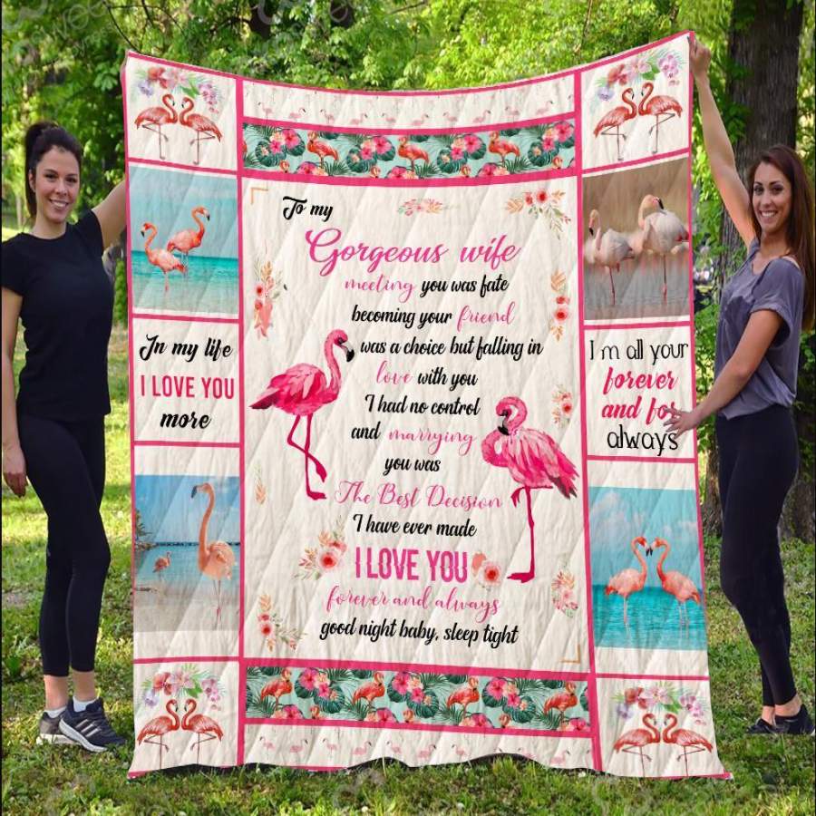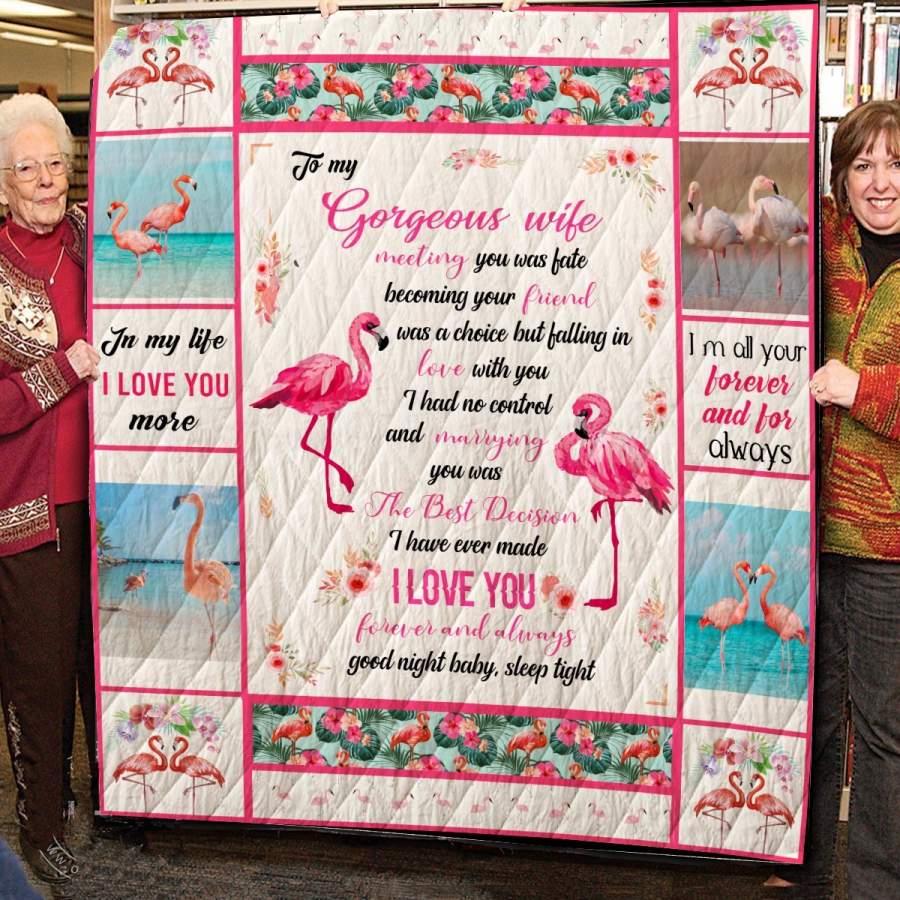 To My Gorgeous Wife Blanket – Flamingo Quilt – Gift For Her Quilt Blanket Christmas Gift Ideas