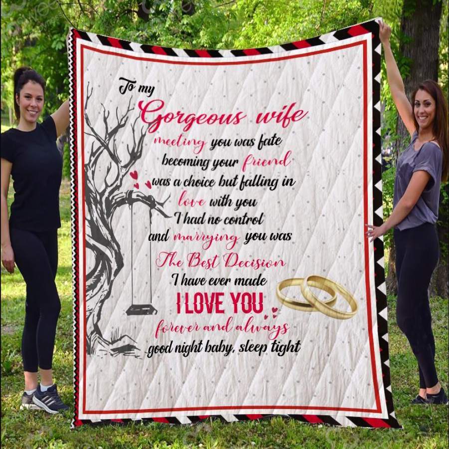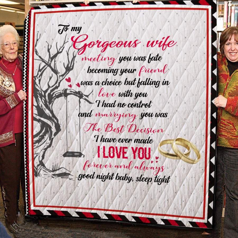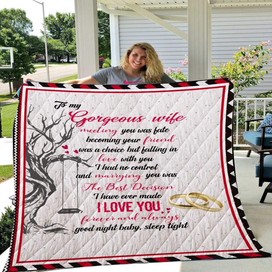 To My Gorgeous Wife Blanket – Love You Forever And Always Quilt – Gift For Her Quilt Blanket Christmas Gift Ideas