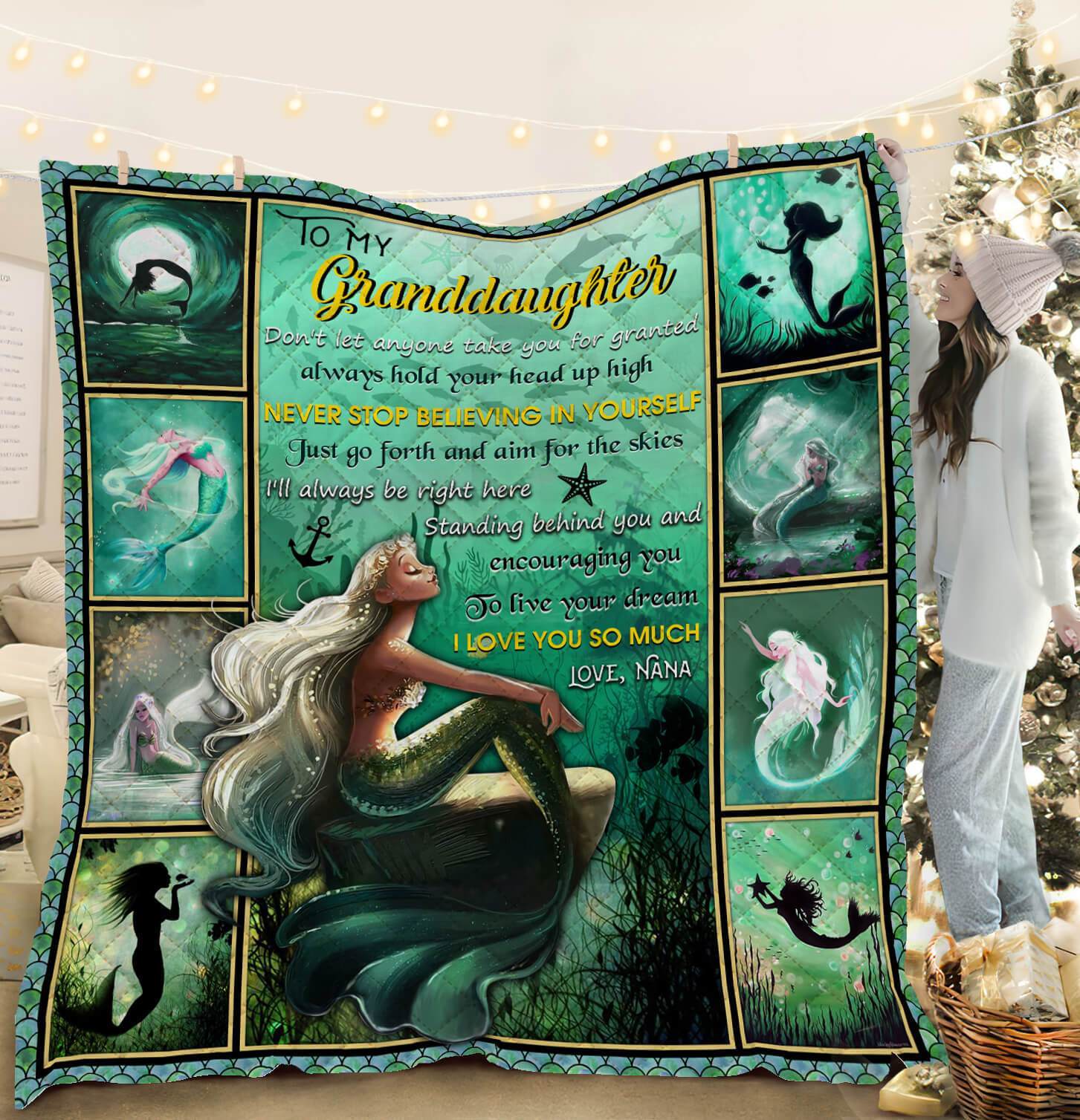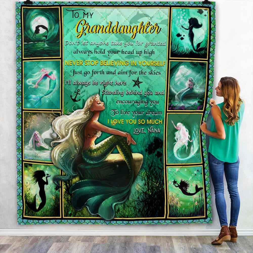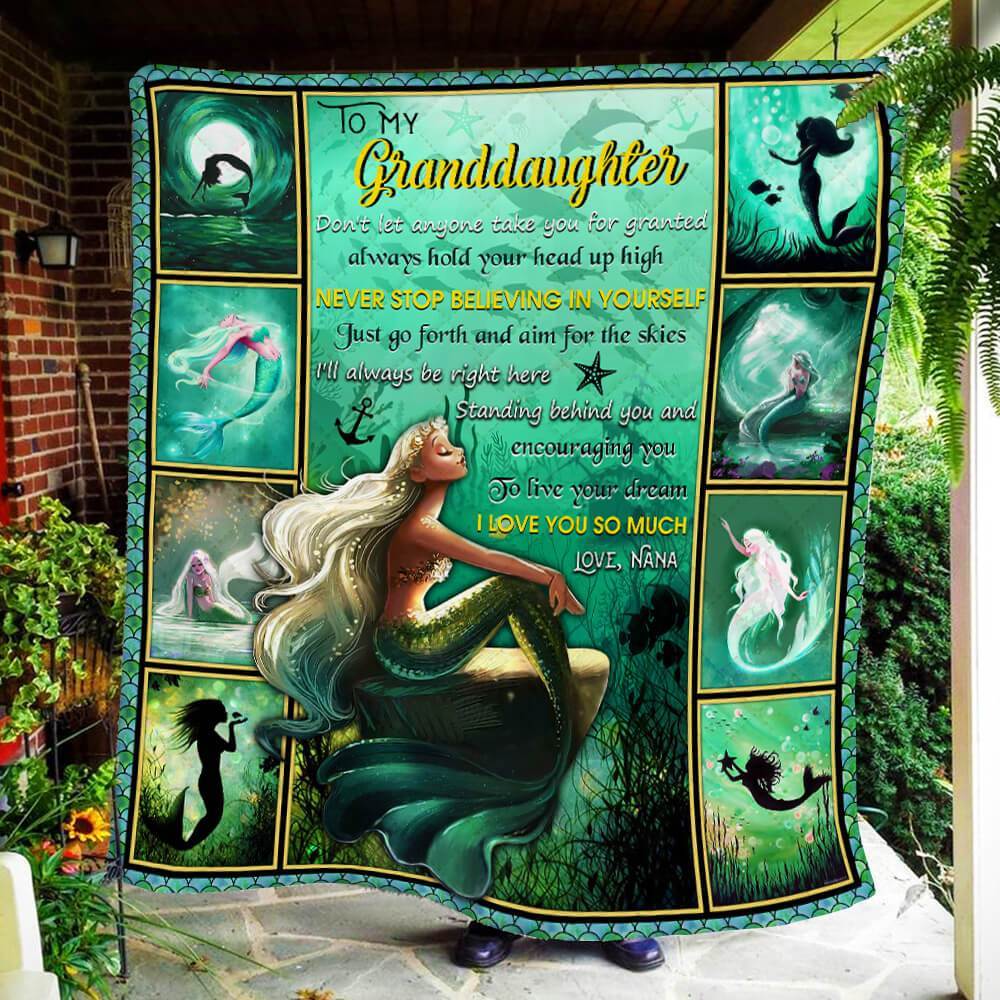 To My Granddaughter, Mermaid, Love Nana Quilt Blanket