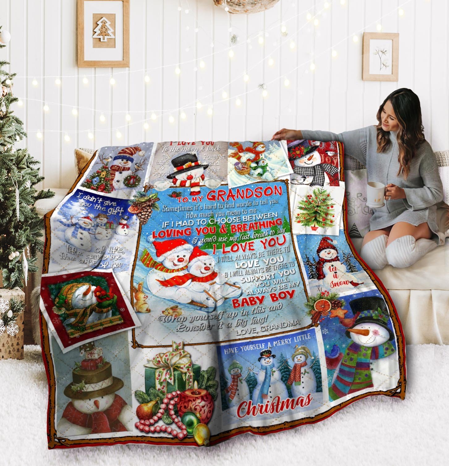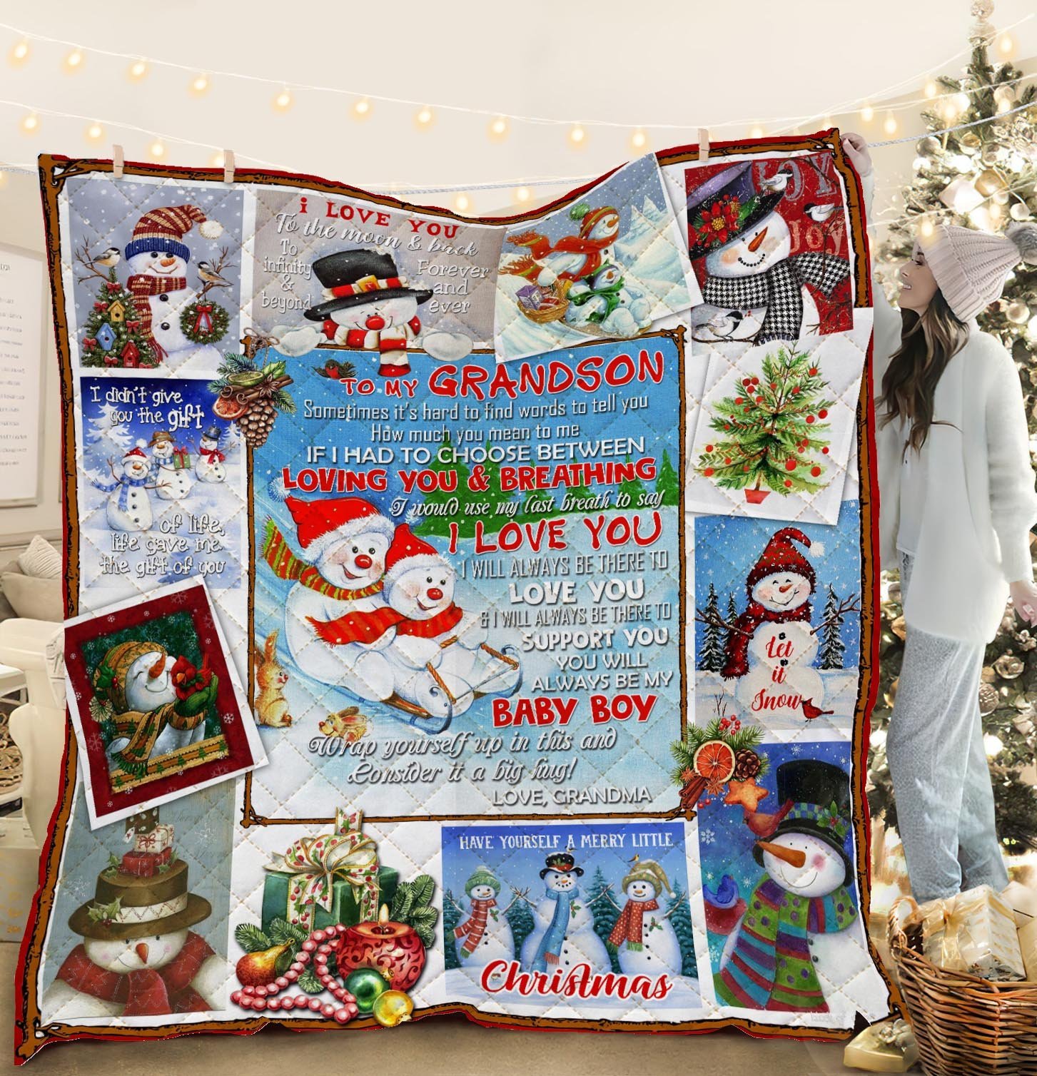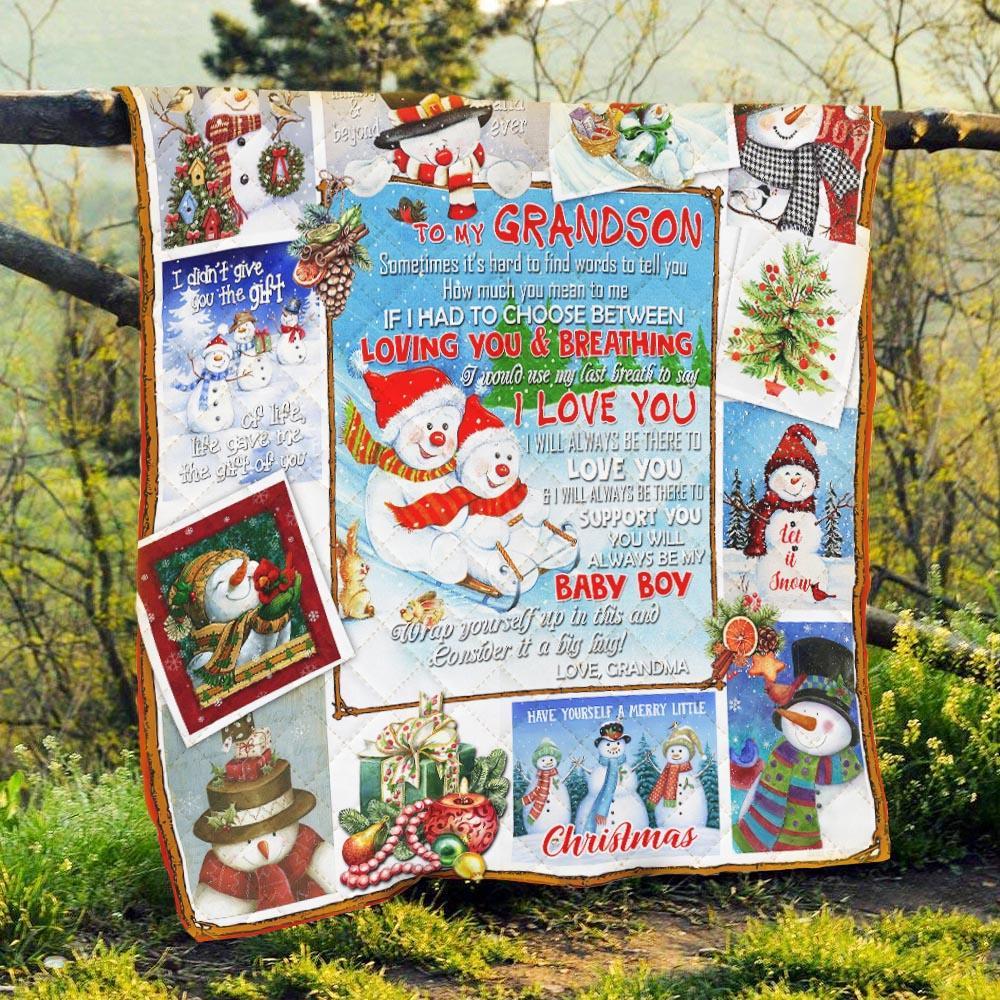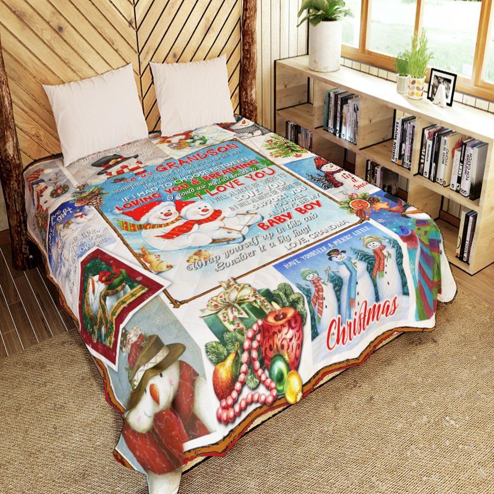To My Grandson. Snowman Christmas Quilt Blanket Grandson Gift Graduation Gifts For Grandson Keepsake Gifts For Grandsons TH