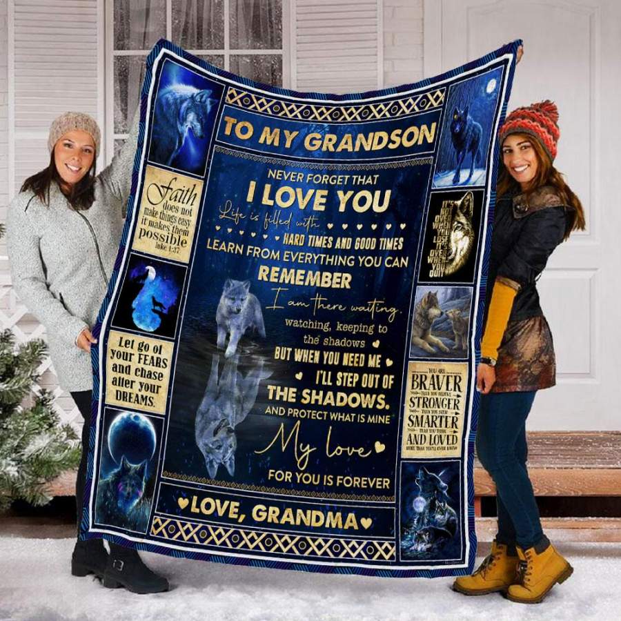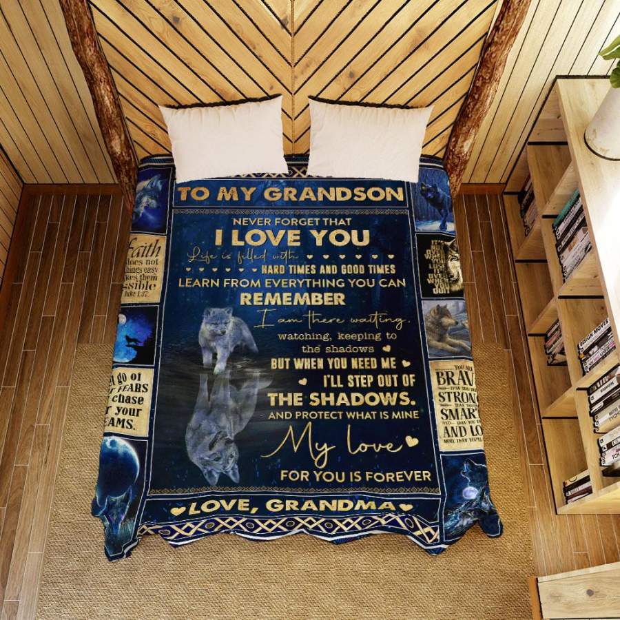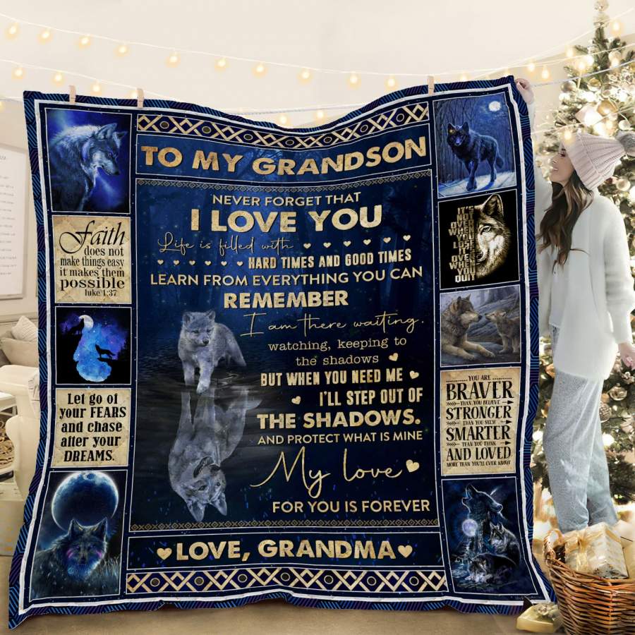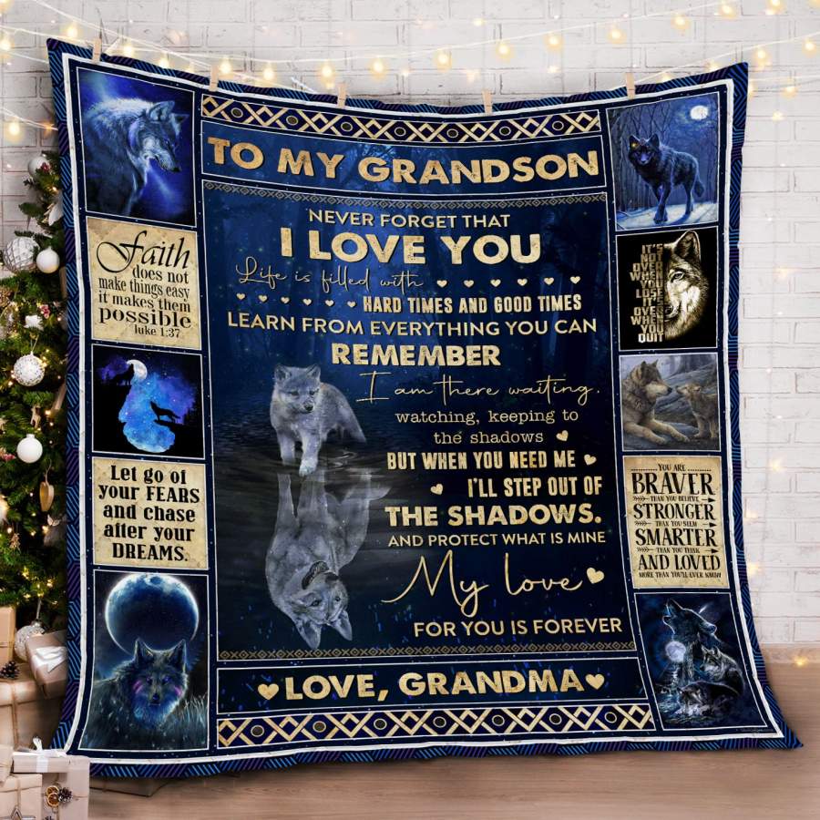 To My Grandson Wolf Quilt Blanket My Love For You Is Forever Love From Grandma Christmas Gift Ideas