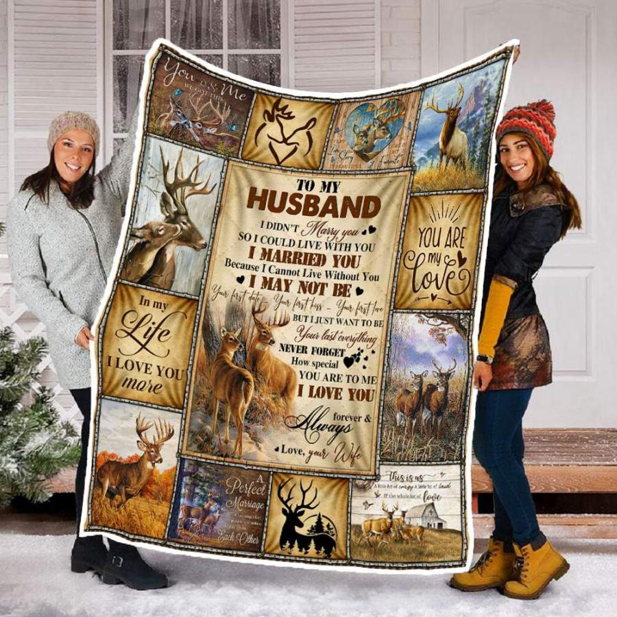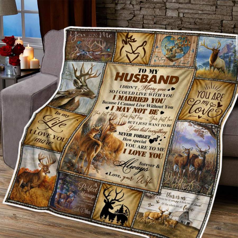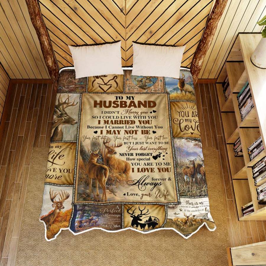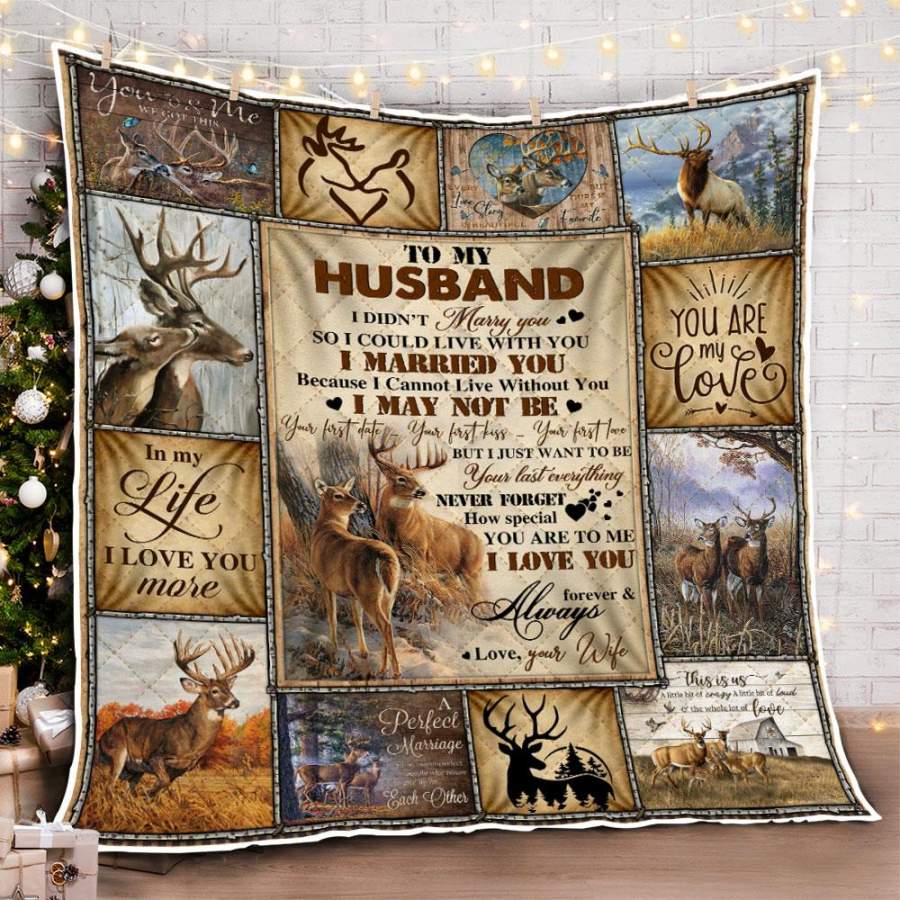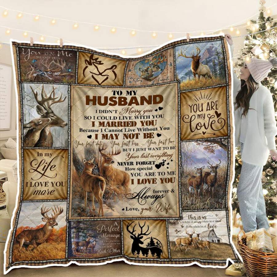 To My Husband, I Love You Forever And Always, Deer Hunting Quilt Blanket Christmas Gift Ideas