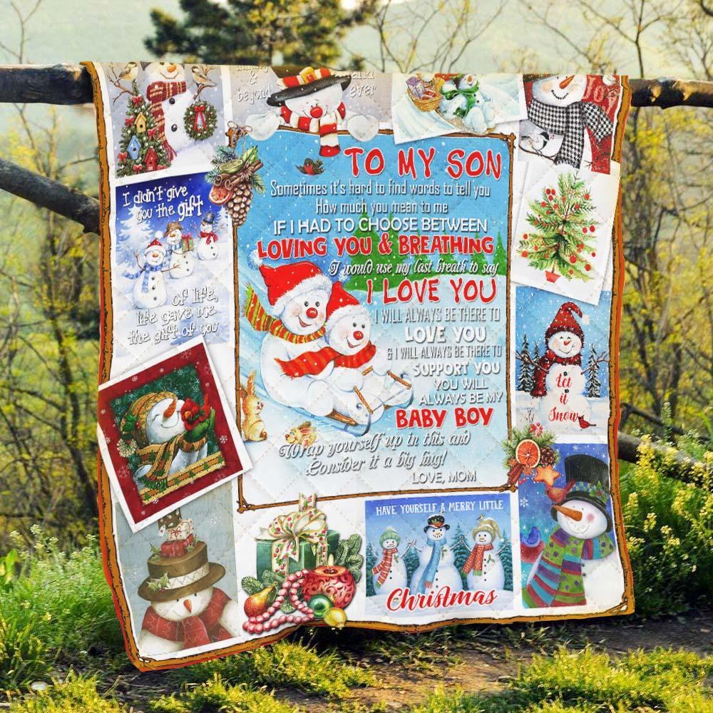 To My Son. Snowman Christmas Quilt Blanket Gifts For Sons From Mothers TH